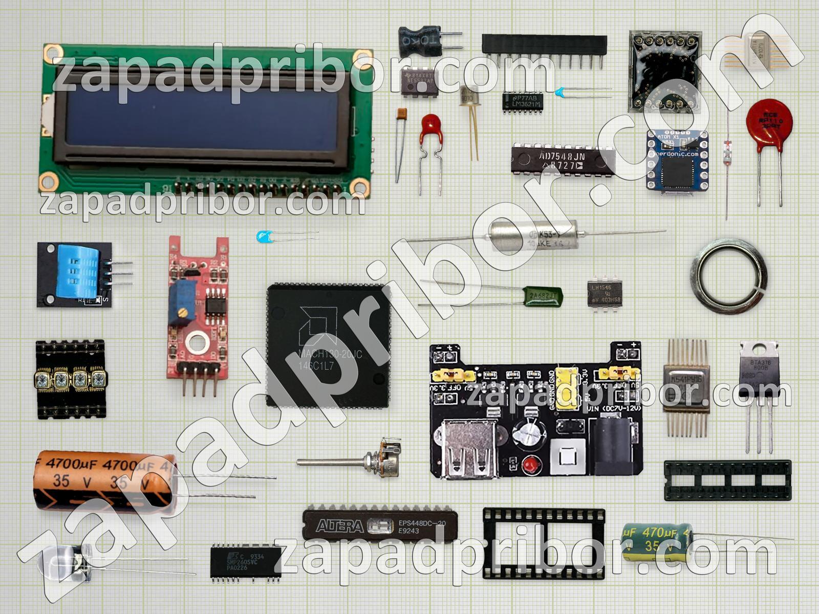 Кроме этих радиодеталей на нашем сайте вы сможете найти большой перечень компонентов. Осуществляйте поиск по основным типам радиодеталей таких как дроссель, тиристор, преобразователь, транзистор, индикатор, контакты, колодки, датчик, соединитель, экран, переключатель, диод, светодиод, индуктивность, тумблер, микросхема, фотодиод, дисплей, разъем, кнопка, усилитель, диодный мост, трансформатор, конденсатор, реле, резонатор, резистор, адаптер и другие.