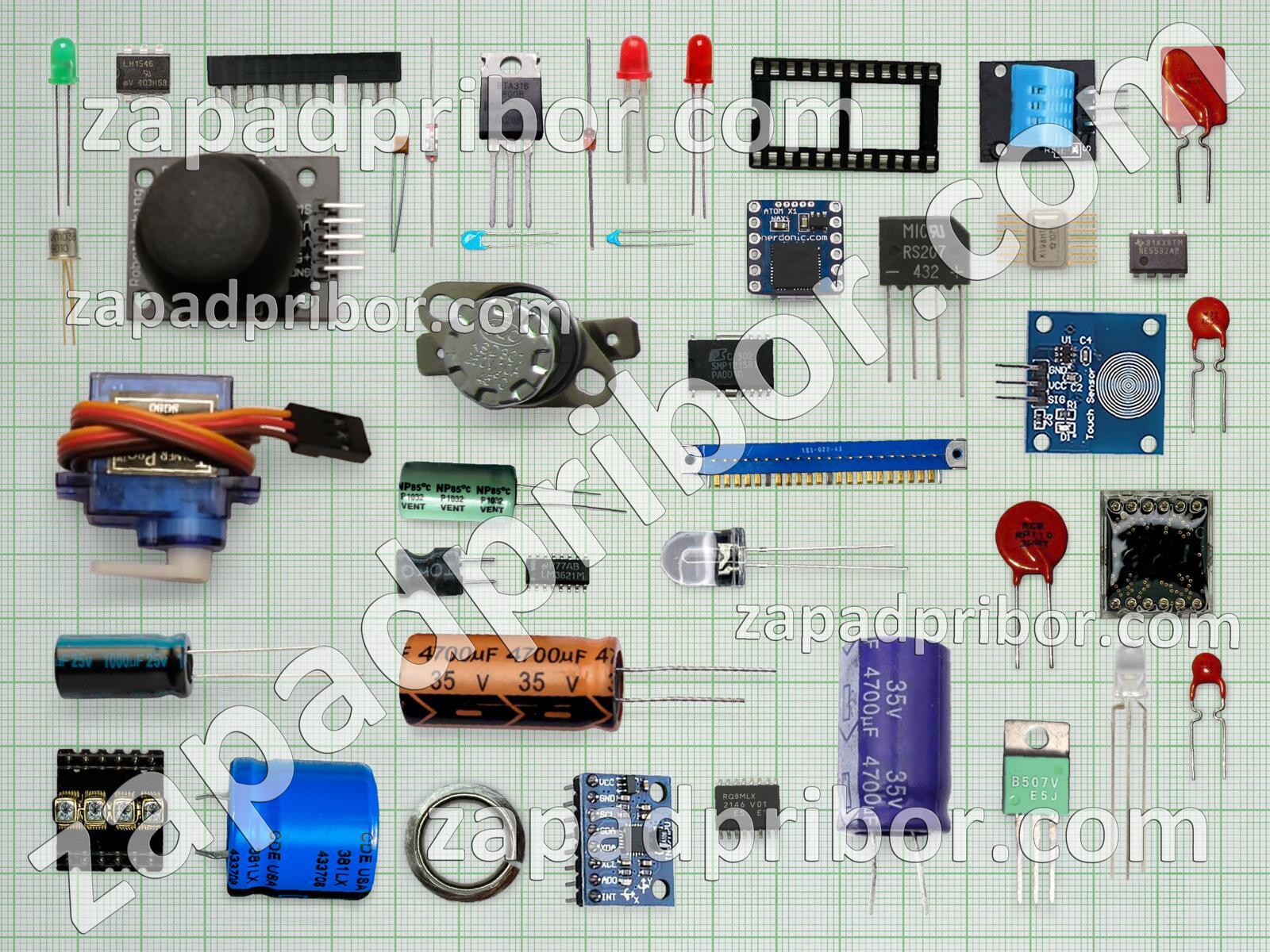 Кроме этих радиодеталей на нашем сайте вы сможете найти большой перечень компонентов. Осуществляйте поиск по основным типам радиодеталей таких как контакты, резонатор, переключатель, тумблер, трансформатор, реле, дисплей, тиристор, усилитель, светодиод, соединитель, микросхема, резистор, адаптер, дроссель, фотодиод, датчик, диод, колодки, конденсатор, индикатор, транзистор, индуктивность, экран, диодный мост, кнопка, разъем, преобразователь и другие.