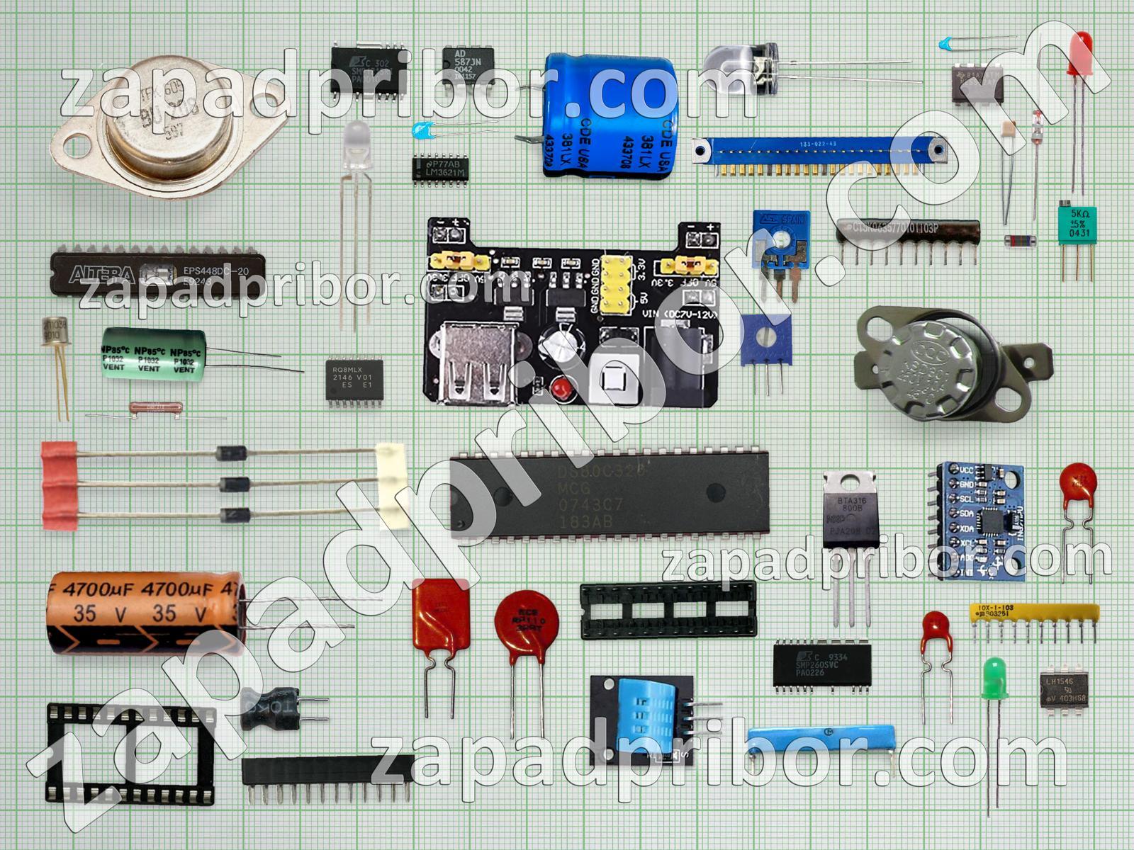 Кроме этих радиодеталей на нашем сайте вы сможете найти большой перечень компонентов. Осуществляйте поиск по основным типам радиодеталей таких как транзистор, соединитель, контакты, дисплей, разъем, фотодиод, колодки, резистор, индуктивность, микросхема, диод, тумблер, реле, усилитель, адаптер, тиристор, индикатор, трансформатор, экран, дроссель, резонатор, диодный мост, светодиод, кнопка, конденсатор, переключатель, датчик, преобразователь и другие.