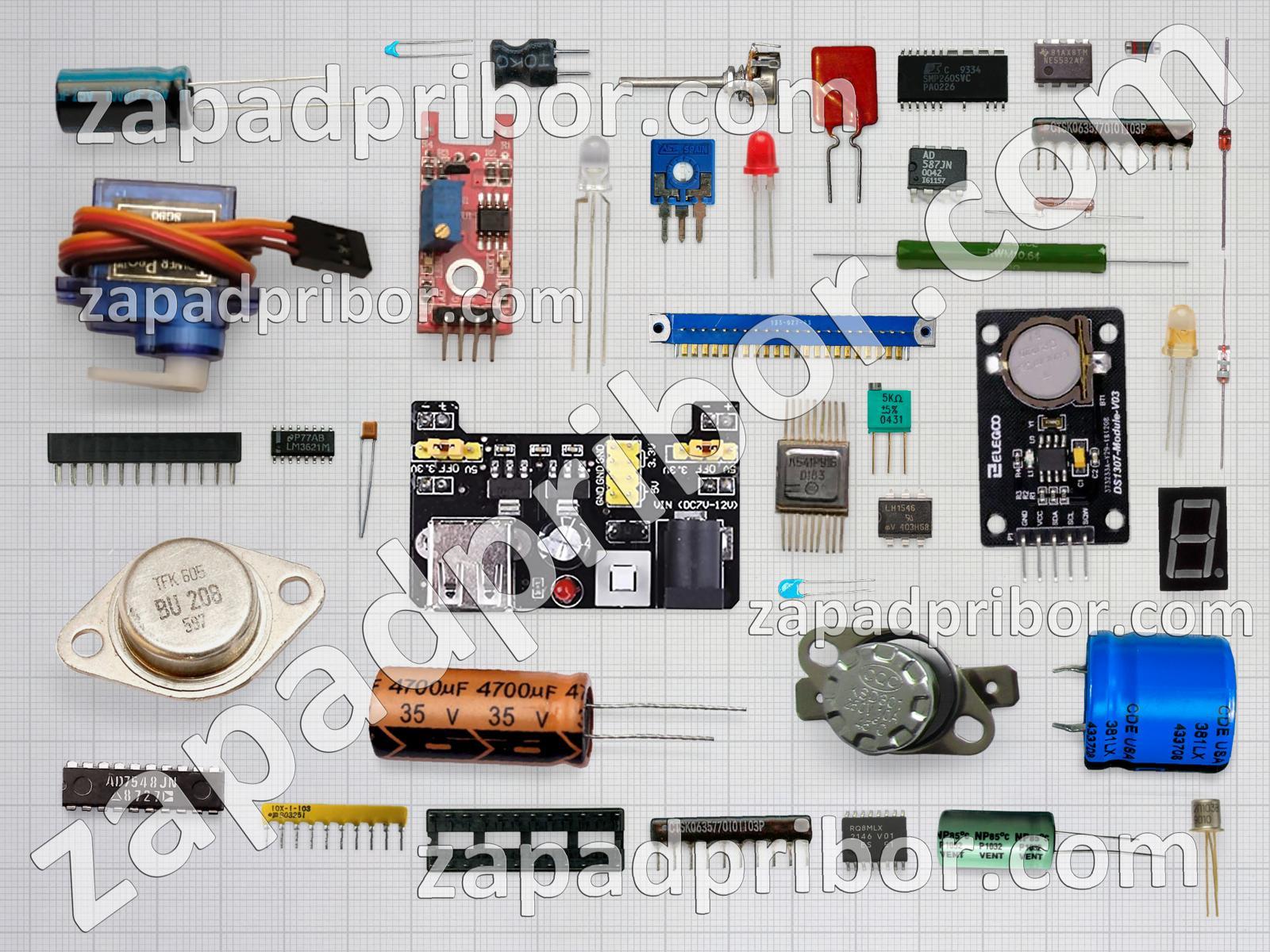 Кроме этих радиодеталей на нашем сайте вы сможете найти большой перечень компонентов. Осуществляйте поиск по основным типам радиодеталей таких как адаптер, фотодиод, реле, индуктивность, дроссель, тиристор, усилитель, индикатор, разъем, диодный мост, конденсатор, светодиод, преобразователь, датчик, тумблер, микросхема, кнопка, соединитель, диод, трансформатор, резистор, колодки, экран, резонатор, контакты, транзистор, переключатель, дисплей и другие.