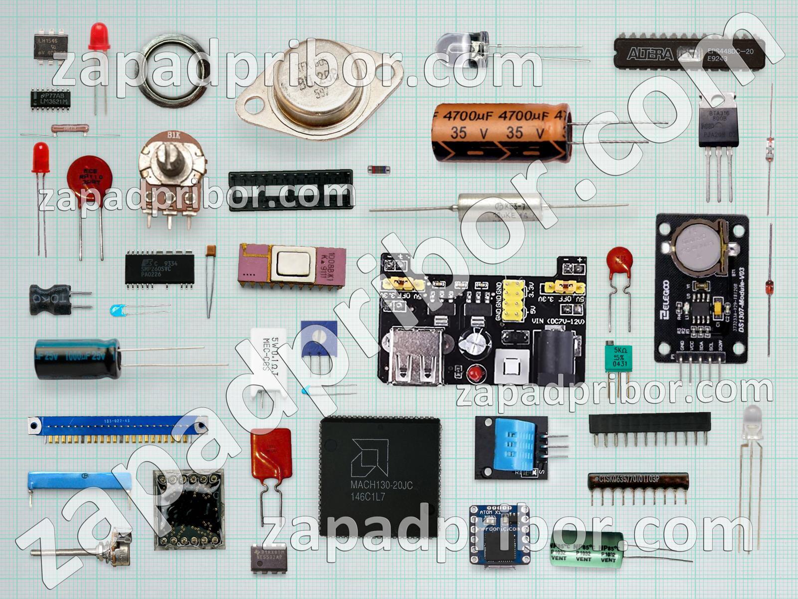 Кроме этих радиодеталей на нашем сайте вы сможете найти большой перечень компонентов. Осуществляйте поиск по основным типам радиодеталей таких как кнопка, соединитель, разъем, экран, преобразователь, светодиод, трансформатор, диод, индуктивность, контакты, конденсатор, переключатель, микросхема, резистор, реле, диодный мост, датчик, тумблер, тиристор, дроссель, адаптер, колодки, дисплей, резонатор, индикатор, транзистор, усилитель, фотодиод и другие.