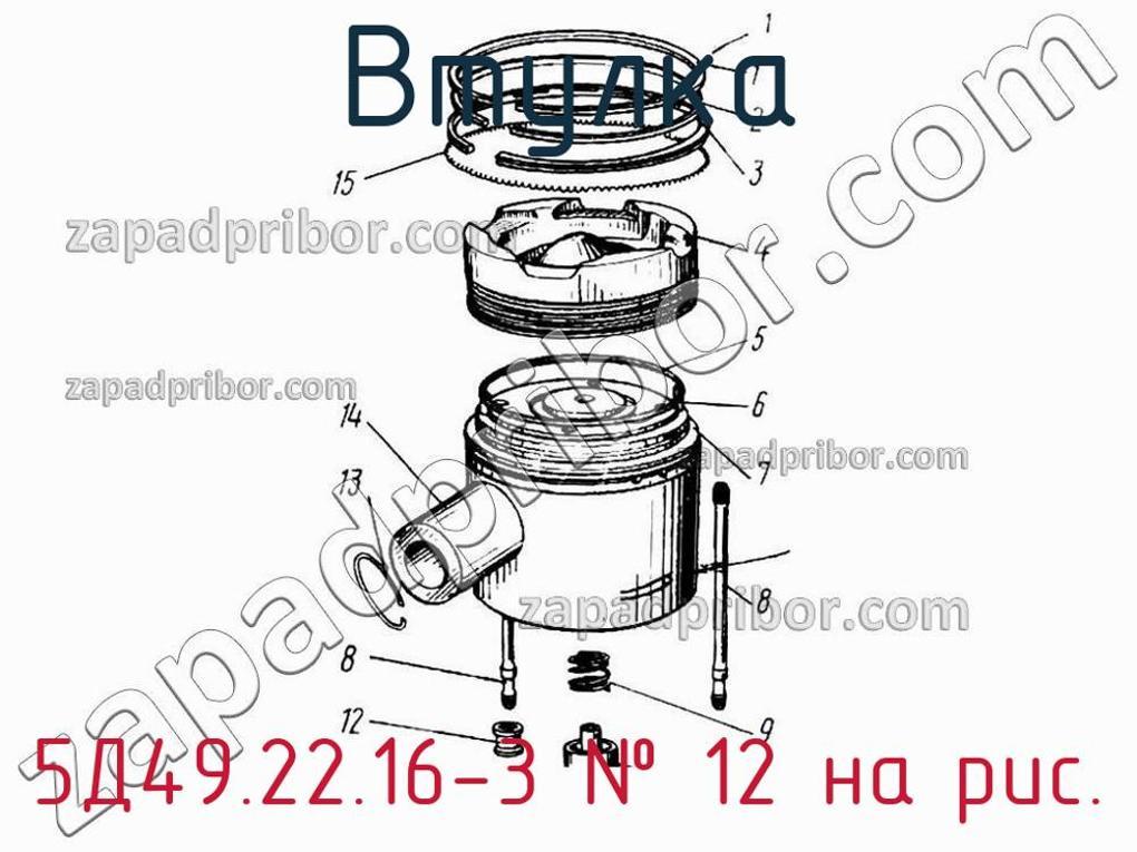Наш ОТК гарантирует отсутствие брака у всех втулок представленных на нашем сайте. Для заказа 5Д49.22.16-3 обращайтесь в отдел продаж. Информация о цене, наличии, сроках поставки, сроке гарантии и по других вопросах обращайтесь по телефонам, указанным в контактах или оставьте заявку через форму обратной связи. Втулка, номер 12 на чертеже, Поршень 5Д49.22спч-9-01 5Д49.22спч-9 и другие запасные части для 49 (Ч 26/26) , а также другие втулки и похожие изделия представлены на сайте zapadpribor.com.