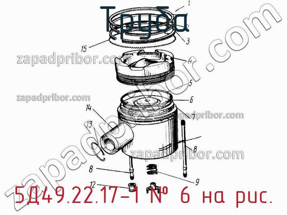 Наш отдел технического контроля дает гарантию отсутствия брака или других несоответствий в технической документации у всех труб представленных на нашем сайте. Чтобы приобрести 5Д49.22.17-1 обратитесь в отдел продаж. Информацию о цене, наличии, сроках поставки, гарантии можно узнать у наших менеджеров. Труба, номер 6 на чертеже, Поршень 5Д49.22спч-9-01 5Д49.22спч-9 и другие запасные части для 49 (Ч 26/26) , а также другие трубы и похожие изделия представлены на сайте zapadpribor.com.