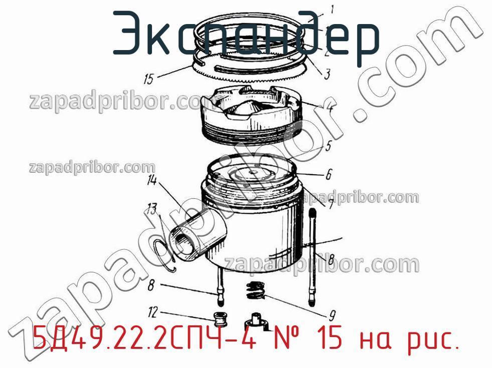 Компания гарантирует отсутствие каких-либо проблем у всех экспандеров, их комплектации и документации. Обратитесь в наш отдел продаж, если у вас есть потребность купить 5Д49.22.2СПЧ-4. Наши менеджеры всегда на связи, чтобы ответить на все ваши вопросы. Экспандер, номер 15 на чертеже, Поршень 5Д49.22спч-9-01 5Д49.22спч-9 и другие запасные части для 49 (Ч 26/26) , а также другие экспандеры и похожие изделия представлены на сайте zapadpribor.com.