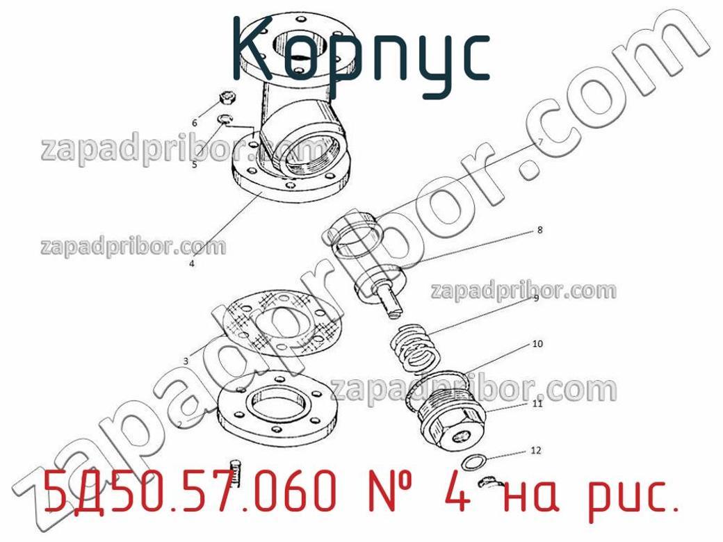 Наш отдел технического контроля дает гарантию отсутствия брака или других несоответствий в технической документации у всех корпусов представленных на нашем сайте. Чтобы приобрести 5Д50.57.060 обратитесь в отдел продаж. Информацию о цене, наличии, сроках поставки, гарантии можно узнать у наших менеджеров. Корпус 5Д50.57.060, номер 4 на чертеже, Комплект монтажных частей 57гр-068 и другие запасные части для ПДГ4А), , а также другие корпуса и похожие изделия представлены на сайте zapadpribor.com.