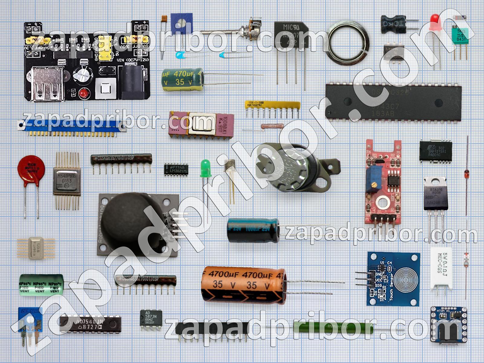 Кроме этих радиодеталей на нашем сайте вы сможете найти большой перечень компонентов. Осуществляйте поиск по основным типам радиодеталей таких как индуктивность, фотодиод, экран, тиристор, колодки, светодиод, датчик, конденсатор, транзистор, тумблер, дроссель, диод, реле, дисплей, трансформатор, контакты, преобразователь, диодный мост, разъем, микросхема, соединитель, резистор, адаптер, переключатель, усилитель, кнопка, индикатор, резонатор и другие.
