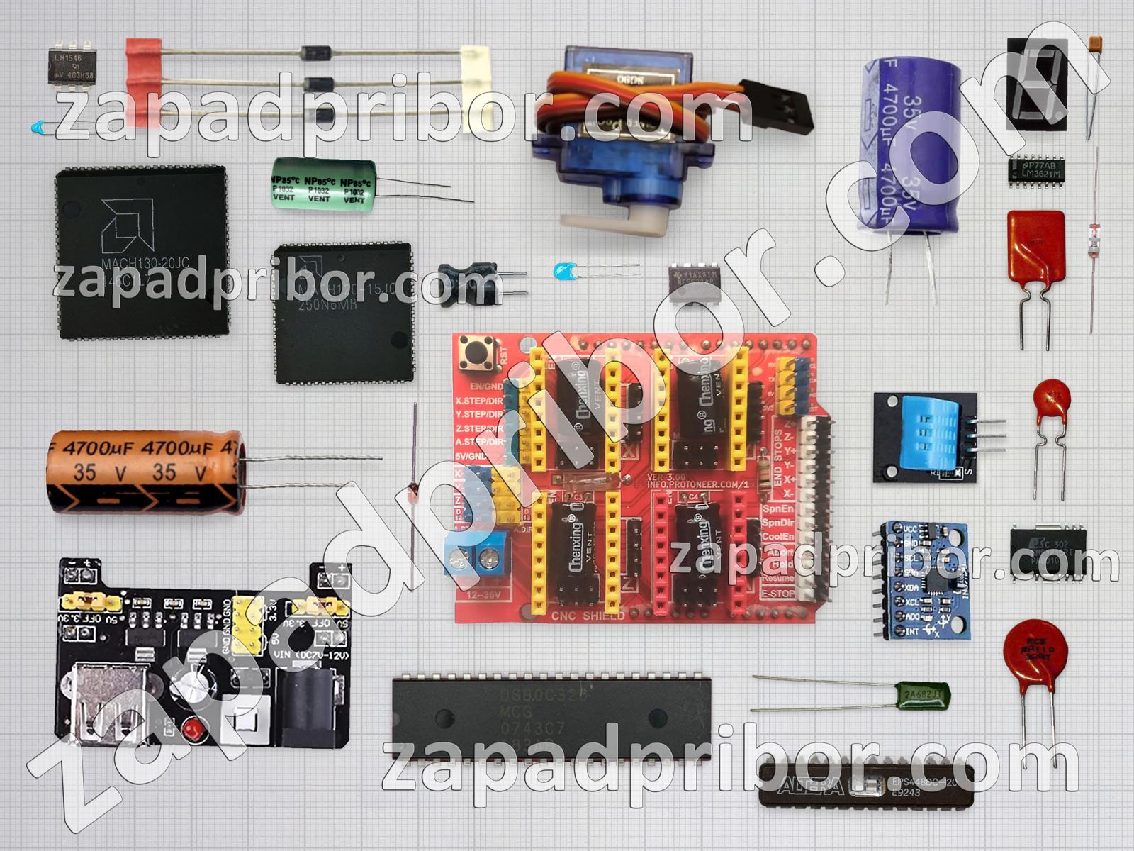 Кроме этих радиодеталей на нашем сайте вы сможете найти большой перечень компонентов. Осуществляйте поиск по основным типам радиодеталей таких как адаптер, соединитель, конденсатор, колодки, резистор, тиристор, резонатор, трансформатор, диод, тумблер, преобразователь, транзистор, контакты, микросхема, дроссель, переключатель, индуктивность, усилитель, дисплей, светодиод, диодный мост, датчик, реле, индикатор, кнопка, экран, разъем, фотодиод и другие.