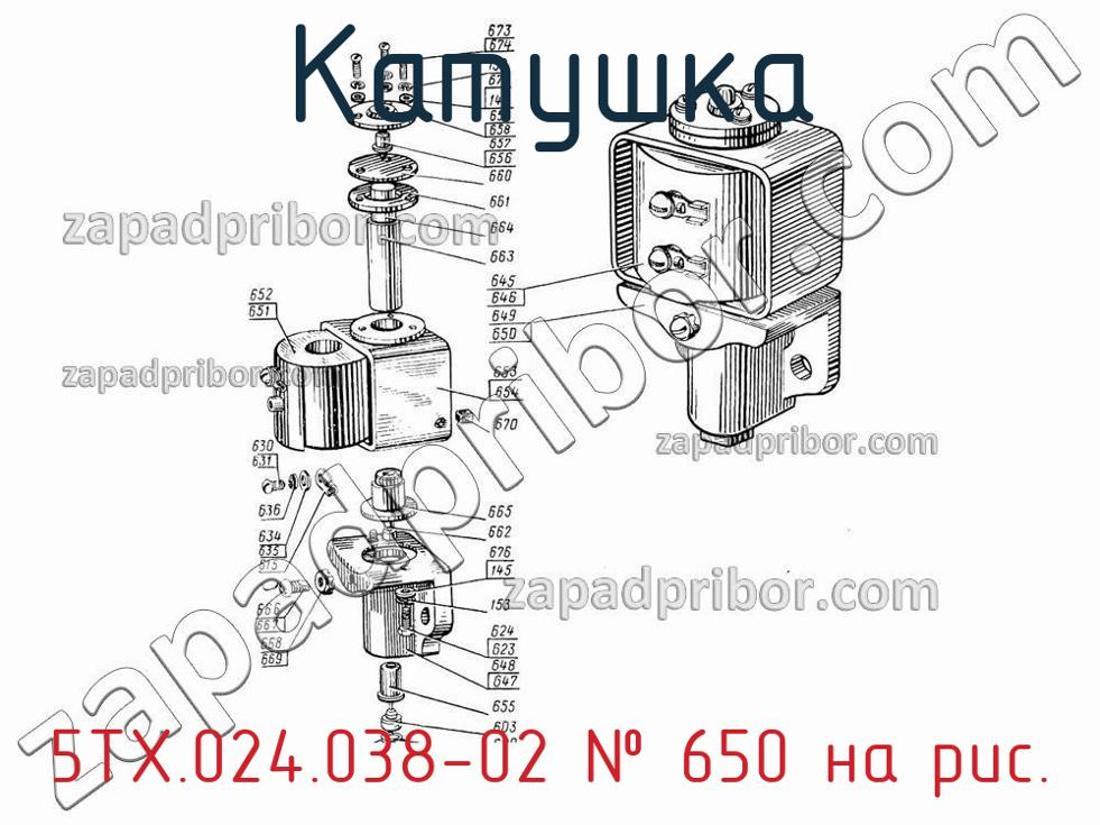 Наш отдел технического контроля гарантирует отсутствие брака или других несоответствий в технической документации или комплектации всех катушек представленных на нашем сайте. Чтобы заказать 5ТХ.024.038-02 обращайтесь в отдел продаж. Чтобы узнать цену, наличие, сроки поставки, срок гарантии и другие вопросы позвоните по телефонам указанным в контактах или оставьте заявку через форму обратной связи. Катушка, номер 650 на чертеже, Вентиль электропневматический включающий ВВ-32, ВВ-32Т и другие запасные части для , а также другие катушки и похожие изделия представлены на сайте zapadpribor.com.