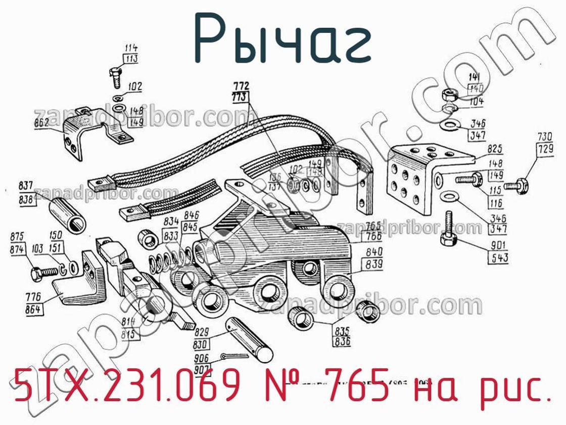 ОТК компании гарантирует отсутствие брака у всех рычагов представленных на нашем сайте. Для покупки 5ТХ.231.069 обратитесь в отдел продаж. Относительно информации о цене, наличии, сроках поставки, гарантии обращайтесь по телефонам, указанным в контактах или оставьте запрос через форму обратной связи. Рычаг, номер 765 на чертеже, Привод пневматический ПК-753Б6, ПК-753Б6Т (805, 806) и другие запасные части для , а также другие рычаги и похожие изделия представлены на сайте zapadpribor.com.