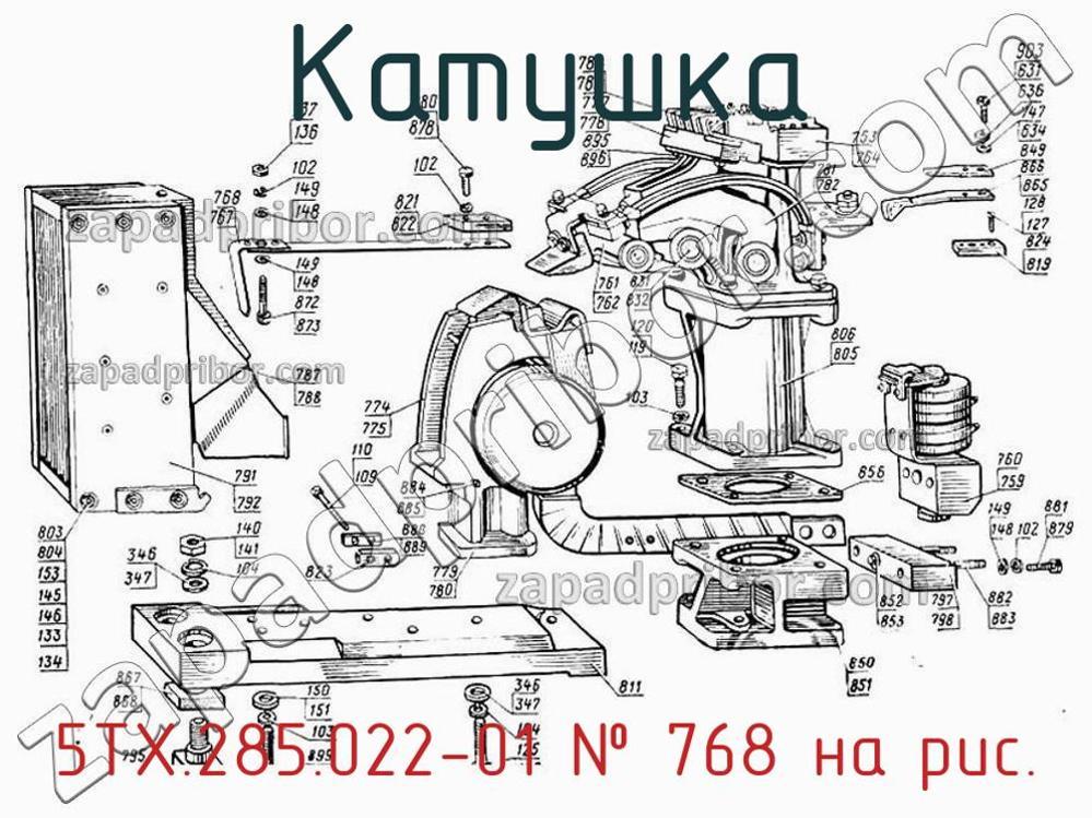 Компания со своей стороны гарантирует отсутствие каких-либо дефектов, несовершенств или неточностей у комплектации и документации катушки. 5ТХ.285.022-01 можно заказать, связавшись с нашим отделом продаж. Наши менеджеры всегда радостно предоставят вам всю информацию о товаре, его наличии, цене и т.д. Для этого позвоните по указанным телефонам или оставьте заявку через форму обратной связи. Катушка дугогасительная, номер 768 на чертеже, Контактор электропневматический ПК-753Б6, ПК-753 (757,758) и другие запасные части для , а также другие катушки и похожие изделия представлены на сайте zapadpribor.com.
