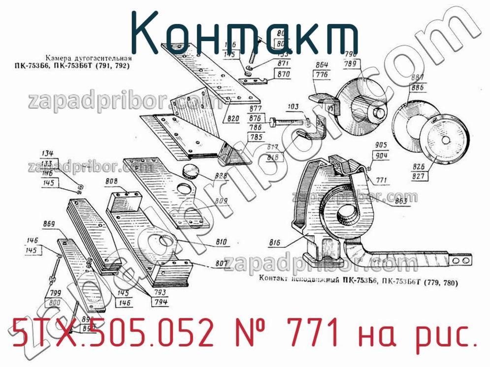 Наш отдел технического контроля дает гарантию отсутствия брака или других несоответствий в технической документации у всех контактов представленных на нашем сайте. Чтобы приобрести 5ТХ.505.052 обратитесь в отдел продаж. Информацию о цене, наличии, сроках поставки, гарантии можно узнать у наших менеджеров. Контакт, номер 771 на чертеже, Камера дугогасительная,Контакт неподвижный ПК-753Б6, ПК-753Б6Т и другие запасные части для , а также другие контакты и похожие изделия представлены на сайте zapadpribor.com.