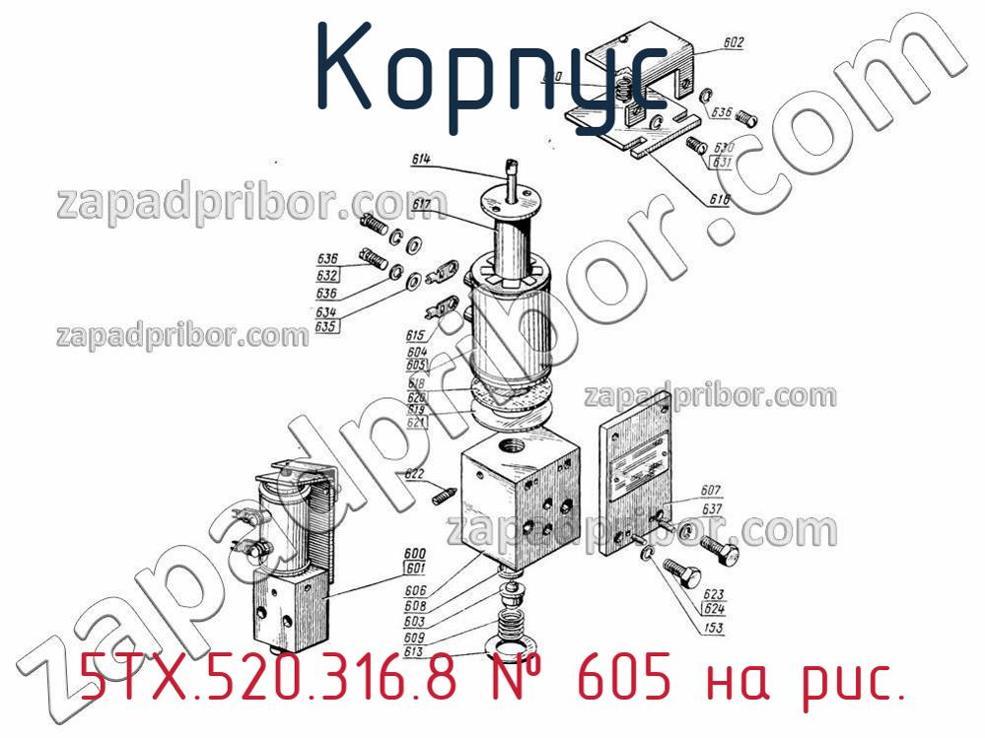 Наш отдел технического контроля гарантирует отсутствие брака и других несоответствий технической документации у всех корпусов представленных на нашем сайте. По вопросам покупки 5ТХ.520.316.8 обращайтесь в отдел продаж. Для информации о цене, наличии, сроках поставки, сроке гарантии и по других вопросах обращайтесь по телефонам, указанным в контактах или оставьте запрос через форму обратной связи. Корпус, номер 605 на чертеже, Вентиль электропневматический включающий ВВ-1, ВВ-1Т и другие запасные части для , а также другие корпуса и похожие изделия представлены на сайте zapadpribor.com.