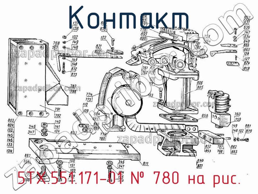 Наш отдел технического контроля гарантирует отсутствие брака или других несоответствий в технической документации или комплектации всех контактов представленных на нашем сайте. Чтобы заказать 5ТХ.551.171-01 обращайтесь в отдел продаж. Чтобы узнать цену, наличие, сроки поставки, срок гарантии и другие вопросы позвоните по телефонам указанным в контактах или оставьте заявку через форму обратной связи. Контакт подвижный, номер 780 на чертеже, Контактор электропневматический ПК-753Б6, ПК-753 (757,758) и другие запасные части для , а также другие контакты и похожие изделия представлены на сайте zapadpribor.com.