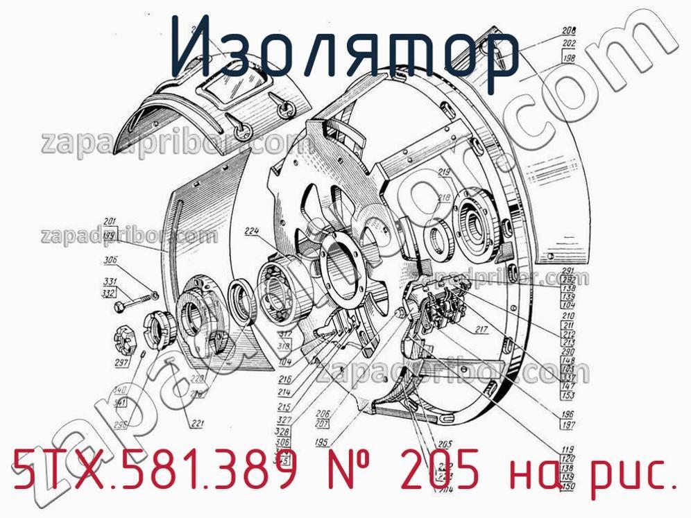 Мы даем гарантию на отсутствие брака или других несоответствий технической документации. По вопросам приобретения 5ТХ.581.389 обращайтесь в отдел продаж. Наши менеджеры предоставят всю интересующую Вас информацию по поводу цены, наличия, сроков доставки, гарантии или ответят на любые другие вопросы. Изолятор, номер 205 на чертеже, Щит подшипниковый ГП-300Б, ГП-300Т и другие запасные части для , а также другие изоляторы и похожие изделия представлены на сайте zapadpribor.com.