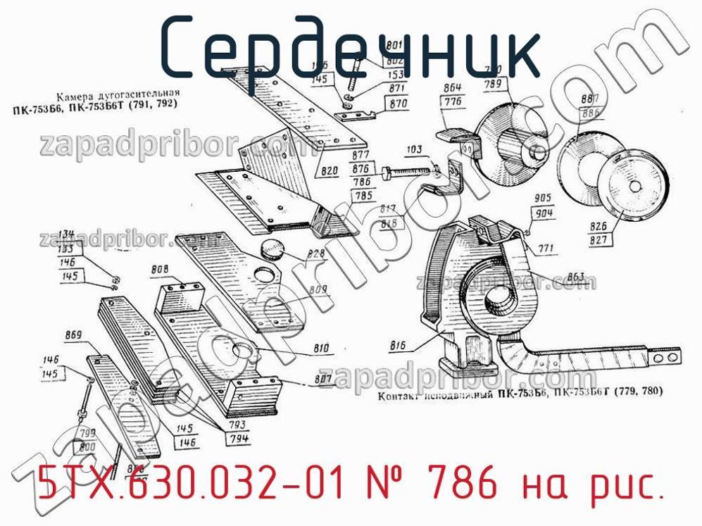 Мы даем гарантию на отсутствие брака или других несоответствий технической документации у всех сердечников. Для приобритения 5ТХ.630.032-01 - обратитесь в наш отдел продаж. Чтобы получить более подробную информацию о товаре, его доставке или у вас есть любой другой вопрос - позвоните нам и мы поможем вам окончательно определиться по поводу приобретения этого товара. Сердечник, номер 786 на чертеже, Камера дугогасительная,Контакт неподвижный ПК-753Б6, ПК-753Б6Т и другие запасные части для , а также другие сердечники и похожие изделия представлены на сайте zapadpribor.com.