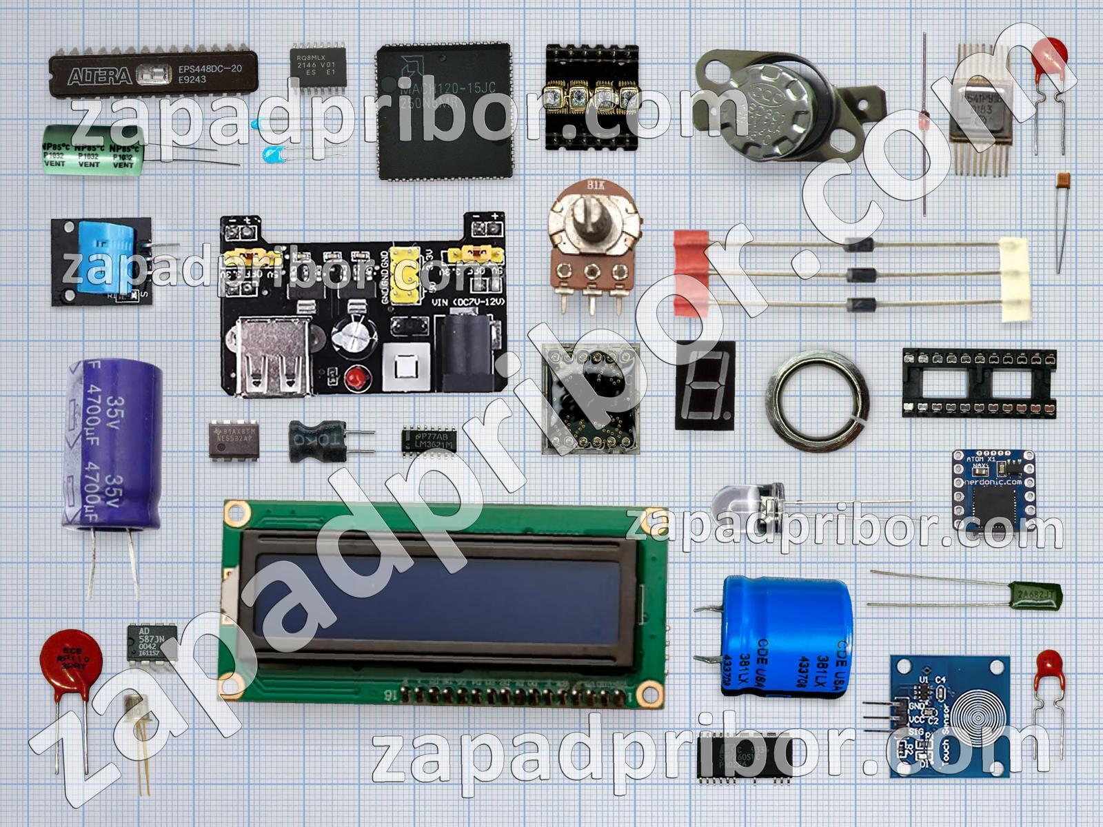 Кроме этих радиодеталей на нашем сайте вы сможете найти большой перечень компонентов. Осуществляйте поиск по основным типам радиодеталей таких как микросхема, датчик, диод, адаптер, индуктивность, резонатор, резистор, транзистор, индикатор, тиристор, светодиод, переключатель, тумблер, кнопка, преобразователь, контакты, усилитель, реле, дисплей, трансформатор, дроссель, конденсатор, разъем, экран, соединитель, фотодиод, колодки, диодный мост и другие.