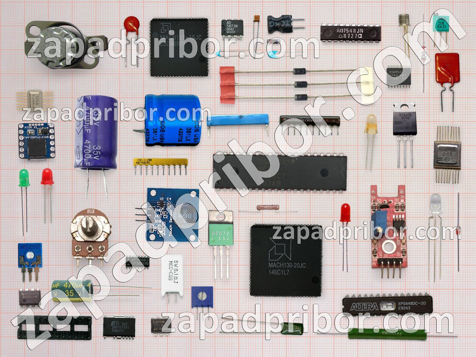 Кроме этих радиодеталей на нашем сайте вы сможете найти большой перечень компонентов. Осуществляйте поиск по основным типам радиодеталей таких как индуктивность, переключатель, диод, адаптер, реле, преобразователь, тумблер, датчик, транзистор, дроссель, фотодиод, усилитель, резистор, светодиод, трансформатор, дисплей, конденсатор, соединитель, индикатор, тиристор, контакты, разъем, резонатор, экран, микросхема, диодный мост, колодки, кнопка и другие.