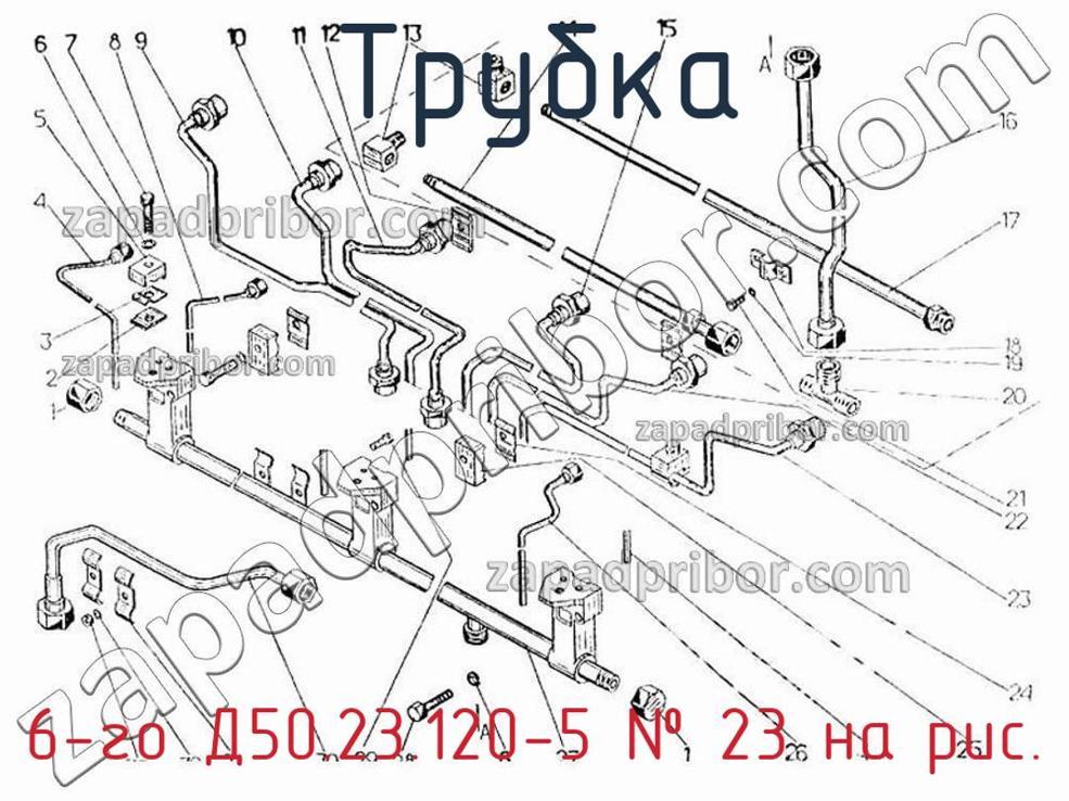 Наш ОТК гарантирует отсутствие брака у всех трубок представленных на нашем сайте. Для заказа 6-го Д50.23.120-5 обращайтесь в отдел продаж. Информация о цене, наличии, сроках поставки, сроке гарантии и по других вопросах обращайтесь по телефонам, указанным в контактах или оставьте заявку через форму обратной связи. Трубка нагнетательная 6-го цилиндра Д50.23.120-5, номер 23 на чертеже, Трубопровод топливный Д50.23 и другие запасные части для ПДГ4А) , а также другие трубки и похожие изделия представлены на сайте zapadpribor.com.