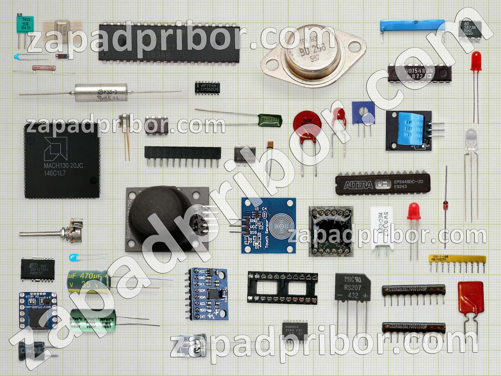 Кроме этих радиодеталей на нашем сайте вы сможете найти большой перечень компонентов. Осуществляйте поиск по основным типам радиодеталей таких как транзистор, конденсатор, адаптер, контакты, диод, усилитель, разъем, резистор, светодиод, преобразователь, диодный мост, дроссель, датчик, соединитель, кнопка, переключатель, колодки, резонатор, микросхема, дисплей, индуктивность, тумблер, трансформатор, тиристор, экран, фотодиод, индикатор, реле и другие.
