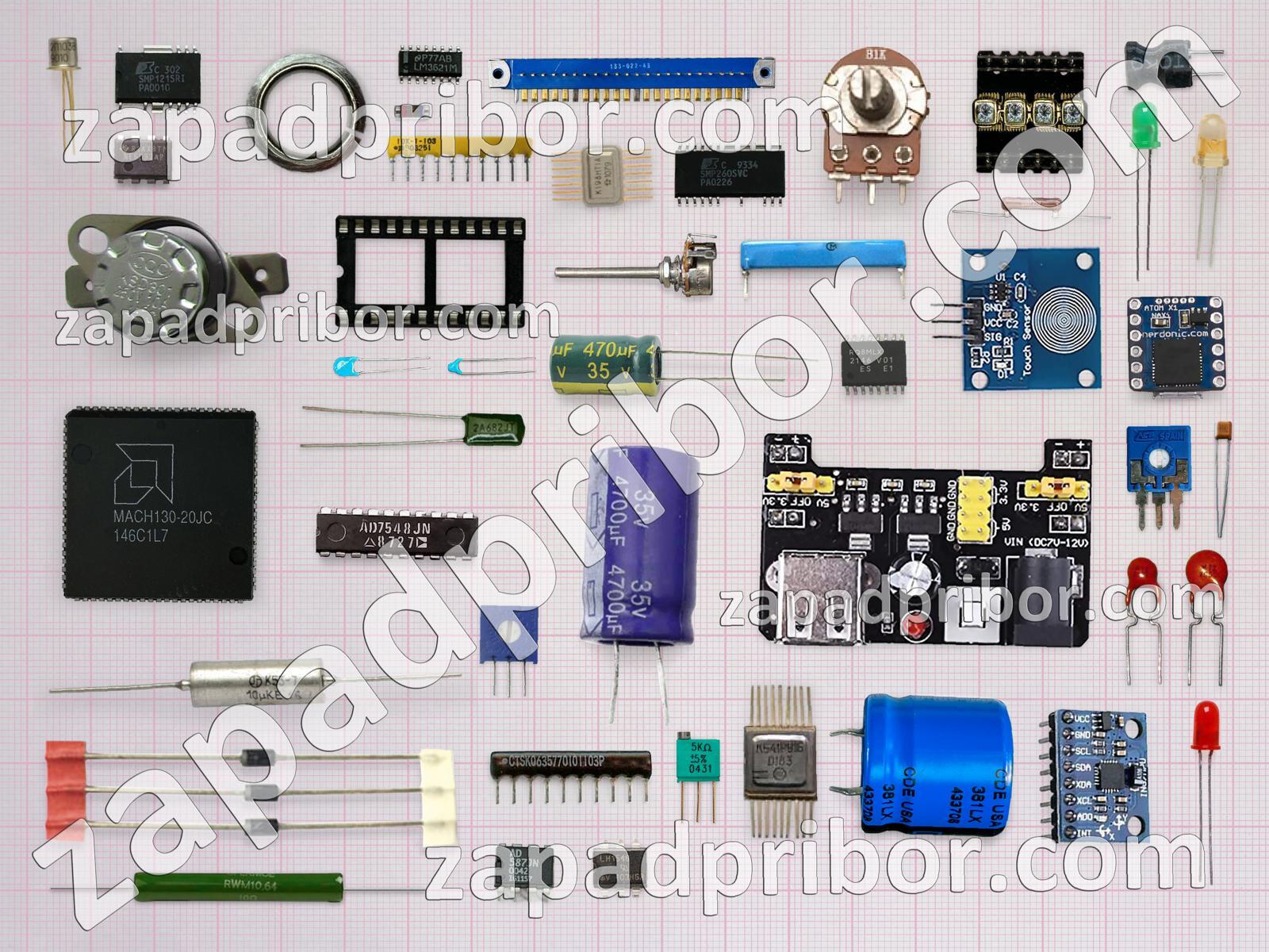 Кроме этих радиодеталей на нашем сайте вы сможете найти большой перечень компонентов. Осуществляйте поиск по основным типам радиодеталей таких как конденсатор, транзистор, трансформатор, индикатор, резонатор, тиристор, резистор, соединитель, преобразователь, усилитель, диодный мост, диод, микросхема, кнопка, светодиод, колодки, реле, разъем, датчик, дроссель, адаптер, дисплей, фотодиод, контакты, индуктивность, экран, тумблер, переключатель и другие.