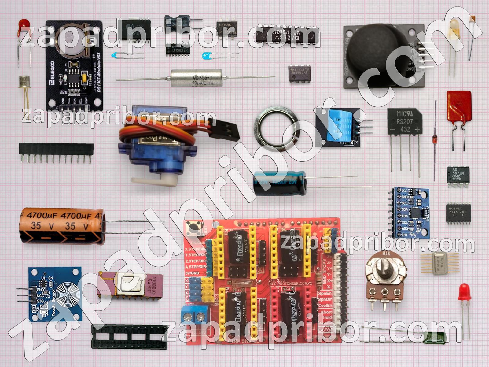 Кроме этих радиодеталей на нашем сайте вы сможете найти большой перечень компонентов. Осуществляйте поиск по основным типам радиодеталей таких как экран, тиристор, светодиод, фотодиод, соединитель, резистор, реле, резонатор, усилитель, датчик, переключатель, разъем, диодный мост, дисплей, адаптер, дроссель, индуктивность, микросхема, колодки, конденсатор, трансформатор, индикатор, контакты, диод, транзистор, тумблер, преобразователь, кнопка и другие.