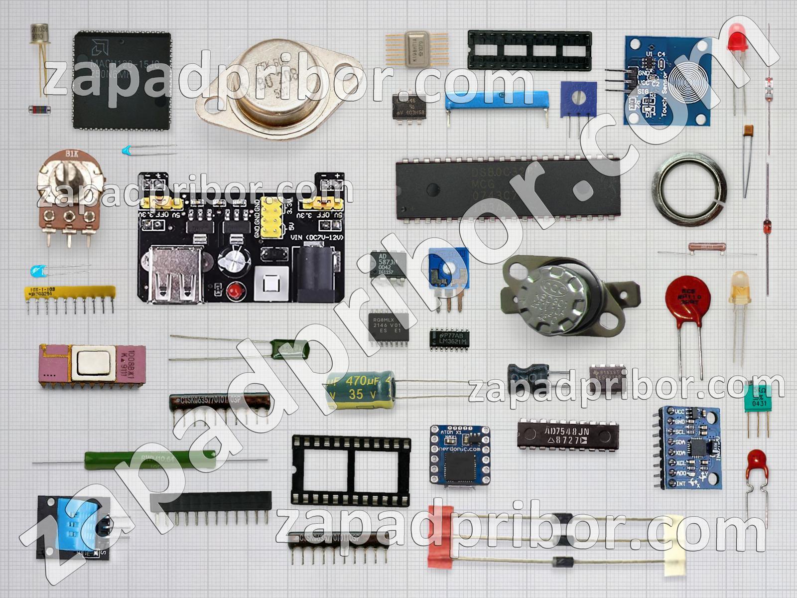 Кроме этих радиодеталей на нашем сайте вы сможете найти большой перечень компонентов. Осуществляйте поиск по основным типам радиодеталей таких как экран, индикатор, контакты, адаптер, диодный мост, датчик, разъем, кнопка, дисплей, индуктивность, усилитель, фотодиод, переключатель, дроссель, конденсатор, диод, резистор, колодки, преобразователь, реле, транзистор, соединитель, светодиод, тумблер, трансформатор, тиристор, микросхема, резонатор и другие.