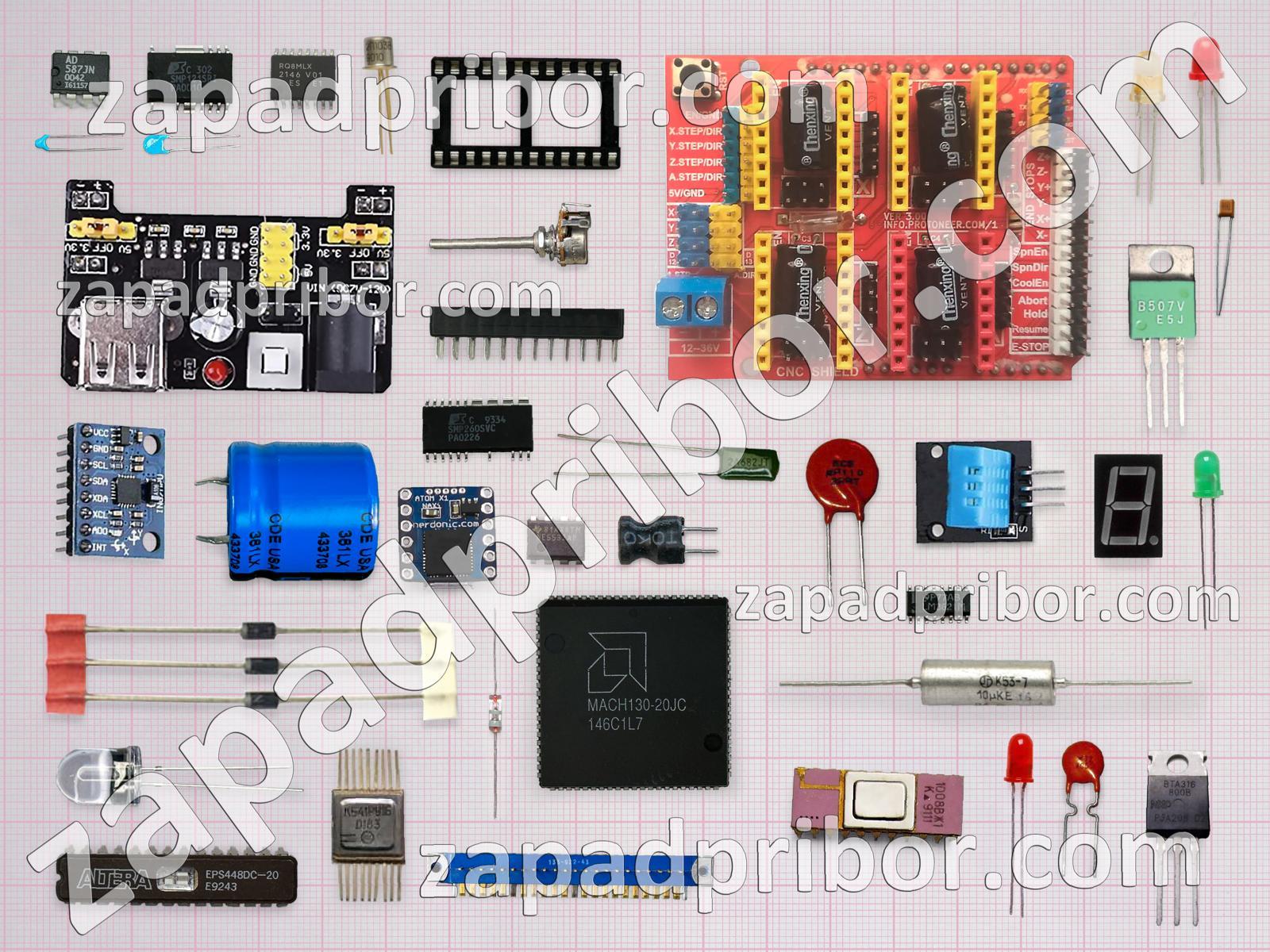 Кроме этих радиодеталей на нашем сайте вы сможете найти большой перечень компонентов. Осуществляйте поиск по основным типам радиодеталей таких как кнопка, переключатель, экран, фотодиод, дроссель, резистор, микросхема, усилитель, диодный мост, колодки, реле, контакты, соединитель, транзистор, индуктивность, диод, светодиод, тиристор, тумблер, датчик, конденсатор, резонатор, дисплей, преобразователь, трансформатор, индикатор, адаптер, разъем и другие.