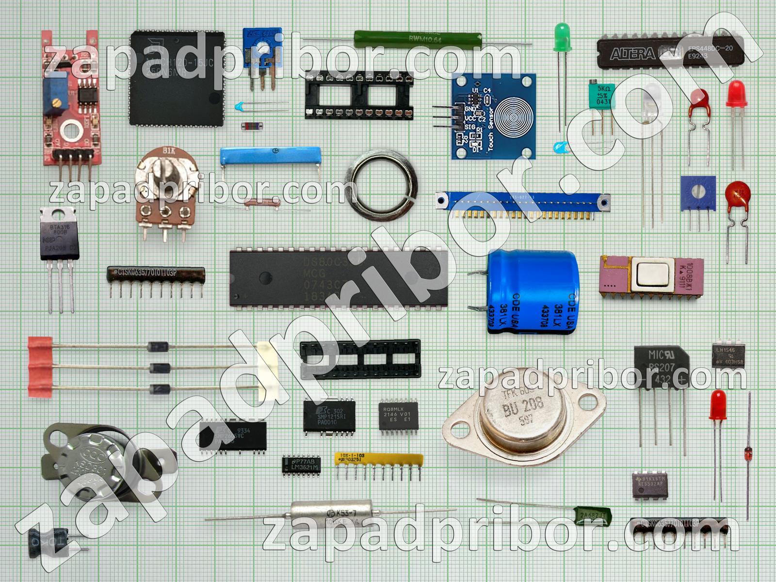 Кроме этих радиодеталей на нашем сайте вы сможете найти большой перечень компонентов. Осуществляйте поиск по основным типам радиодеталей таких как конденсатор, переключатель, диод, адаптер, разъем, тумблер, усилитель, датчик, соединитель, дроссель, диодный мост, колодки, резонатор, экран, транзистор, преобразователь, микросхема, кнопка, дисплей, тиристор, реле, резистор, трансформатор, индуктивность, светодиод, контакты, фотодиод, индикатор и другие.