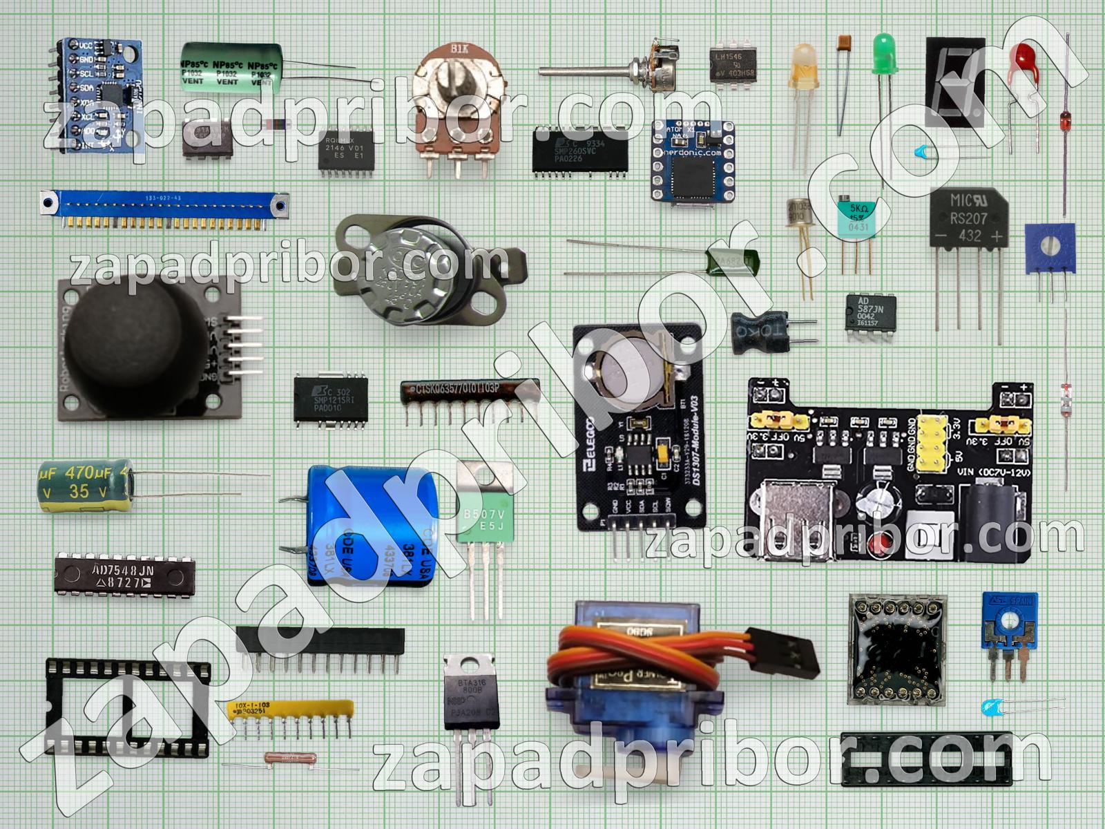 Кроме этих радиодеталей на нашем сайте вы сможете найти большой перечень компонентов. Осуществляйте поиск по основным типам радиодеталей таких как светодиод, преобразователь, диодный мост, резистор, конденсатор, контакты, реле, транзистор, индикатор, переключатель, усилитель, колодки, тумблер, резонатор, индуктивность, датчик, дисплей, адаптер, фотодиод, кнопка, диод, трансформатор, разъем, дроссель, экран, тиристор, микросхема, соединитель и другие.