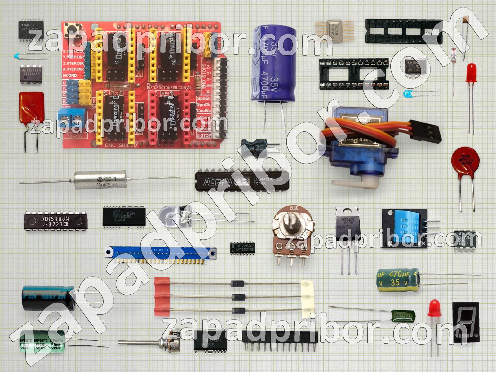 Кроме этих радиодеталей на нашем сайте вы сможете найти большой перечень компонентов. Осуществляйте поиск по основным типам радиодеталей таких как колодки, соединитель, транзистор, кнопка, датчик, переключатель, фотодиод, экран, усилитель, преобразователь, конденсатор, трансформатор, тумблер, дроссель, резистор, индуктивность, диодный мост, светодиод, тиристор, разъем, микросхема, контакты, резонатор, адаптер, реле, дисплей, индикатор, диод и другие.