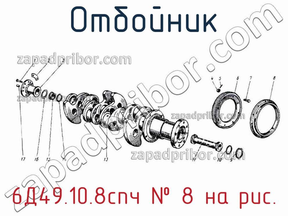 Наш отдел технического контроля гарантирует отсутствие брака или других несоответствий в технической документации или комплектации всех отбойников представленных на нашем сайте. Чтобы заказать 6Д49.10.8спч обращайтесь в отдел продаж. Чтобы узнать цену, наличие, сроки поставки, срок гарантии и другие вопросы позвоните по телефонам указанным в контактах или оставьте заявку через форму обратной связи. Отбойник, номер 8 на чертеже, Вал коленчатый 1-6Д49.8спч и другие запасные части для 49 (Ч 26/26) , а также другие отбойники и похожие изделия представлены на сайте zapadpribor.com.