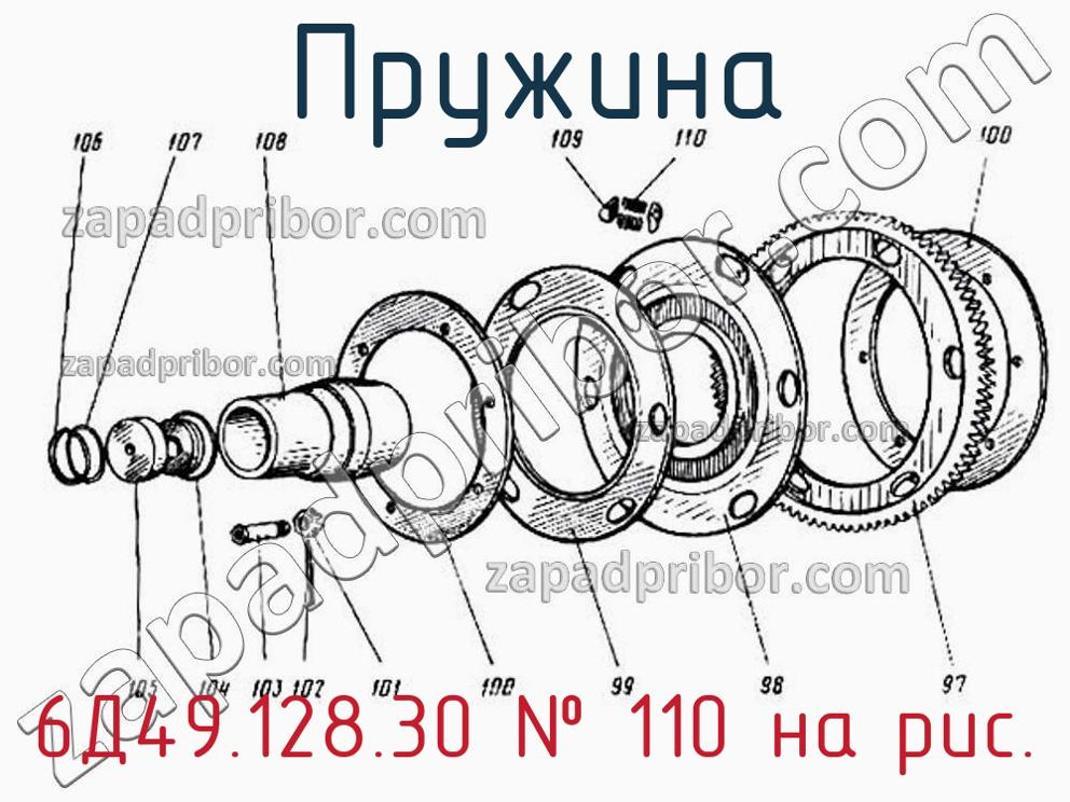 Наш отдел технического контроля гарантирует отсутствие брака или других несоответствий в технической документации или комплектации всех пружин представленных на нашем сайте. Чтобы заказать 6Д49.128.30 обращайтесь в отдел продаж. Чтобы узнать цену, наличие, сроки поставки, срок гарантии и другие вопросы позвоните по телефонам указанным в контактах или оставьте заявку через форму обратной связи. Пружина, номер 110 на чертеже, Привод насосов 3А-6Д49.128спч ч.6 и другие запасные части для 49 (Ч 26/26) , а также другие пружины и похожие изделия представлены на сайте zapadpribor.com.