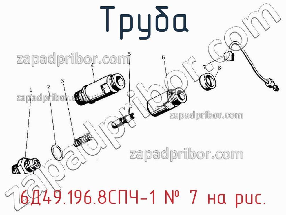 Компания гарантирует отсутствие каких-либо проблем у всех труб, их комплектации и документации. Обратитесь в наш отдел продаж, если у вас есть потребность купить 6Д49.196.8СПЧ-1. Наши менеджеры всегда на связи, чтобы ответить на все ваши вопросы. Труба, номер 7 на чертеже, Топливопровод низкого давления 3А-6Д49.196спч-1 и другие запасные части для 49 (Ч 26/26) , а также другие трубы и похожие изделия представлены на сайте zapadpribor.com.
