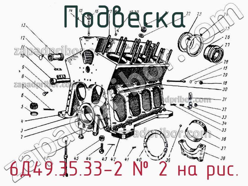 Наш отдел технического контроля гарантирует отсутствие брака или других несоответствий в технической документации или комплектации всех подвесок представленных на нашем сайте. Чтобы заказать 6Д49.35.33-2 обращайтесь в отдел продаж. Чтобы узнать цену, наличие, сроки поставки, срок гарантии и другие вопросы позвоните по телефонам указанным в контактах или оставьте заявку через форму обратной связи. Подвеска, номер 2 на чертеже, Блок цилиндров 3А-6Д49.35спч и другие запасные части для 49 (Ч 26/26) , а также другие подвески и похожие изделия представлены на сайте zapadpribor.com.