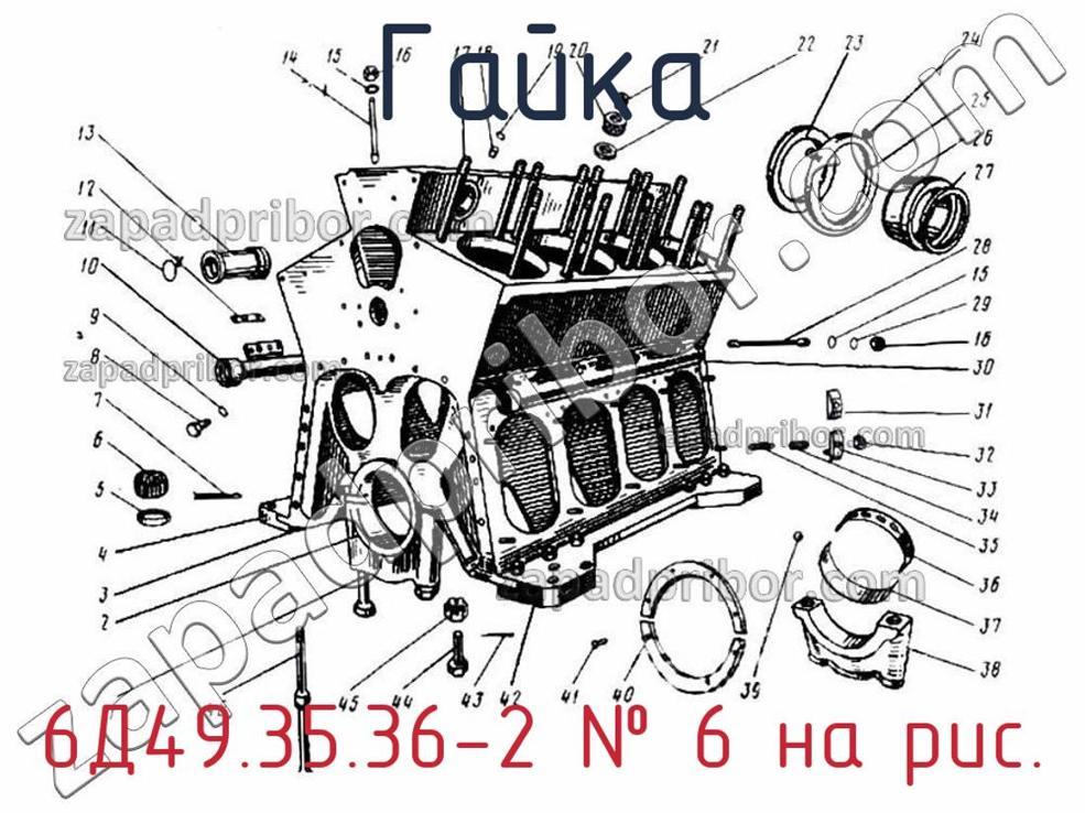 Наш отдел технического контроля в свою очередь гарантирует отсутствие какого-либо брака или других проблем с товаром в технической документации и т.д. Если хотите приобрести 6Д49.35.36-2 – обратитесь в наш отдел продаж. Интересует цена, наличие товара, гарантийные условия или какая-либо дополнительная информация о товаре - обратитесь за указанным номером телефона. Гайка, номер 6 на чертеже, Блок цилиндров 3А-6Д49.35спч и другие запасные части для 49 (Ч 26/26) , а также другие гайки и похожие изделия представлены на сайте zapadpribor.com.