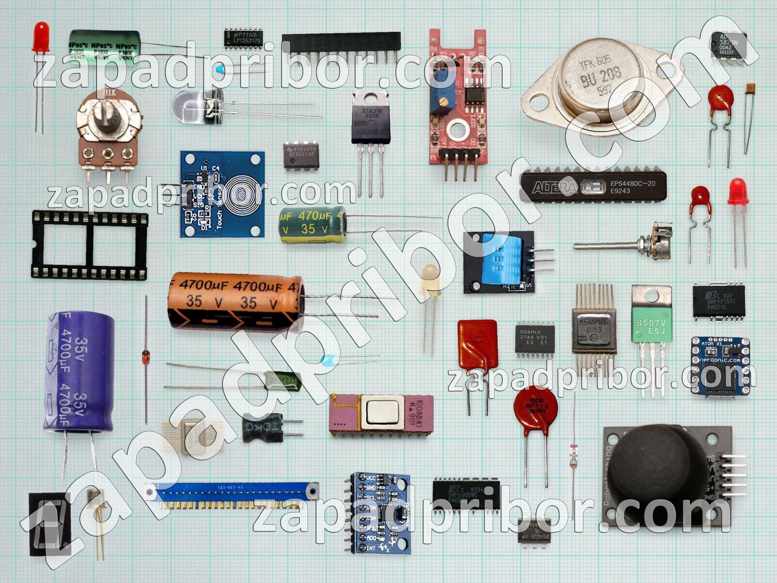 Кроме этих радиодеталей на нашем сайте вы сможете найти большой перечень компонентов. Осуществляйте поиск по основным типам радиодеталей таких как трансформатор, кнопка, индикатор, резистор, резонатор, колодки, усилитель, диодный мост, переключатель, тиристор, соединитель, экран, дроссель, транзистор, реле, контакты, преобразователь, индуктивность, дисплей, диод, микросхема, фотодиод, адаптер, светодиод, датчик, разъем, конденсатор, тумблер и другие.