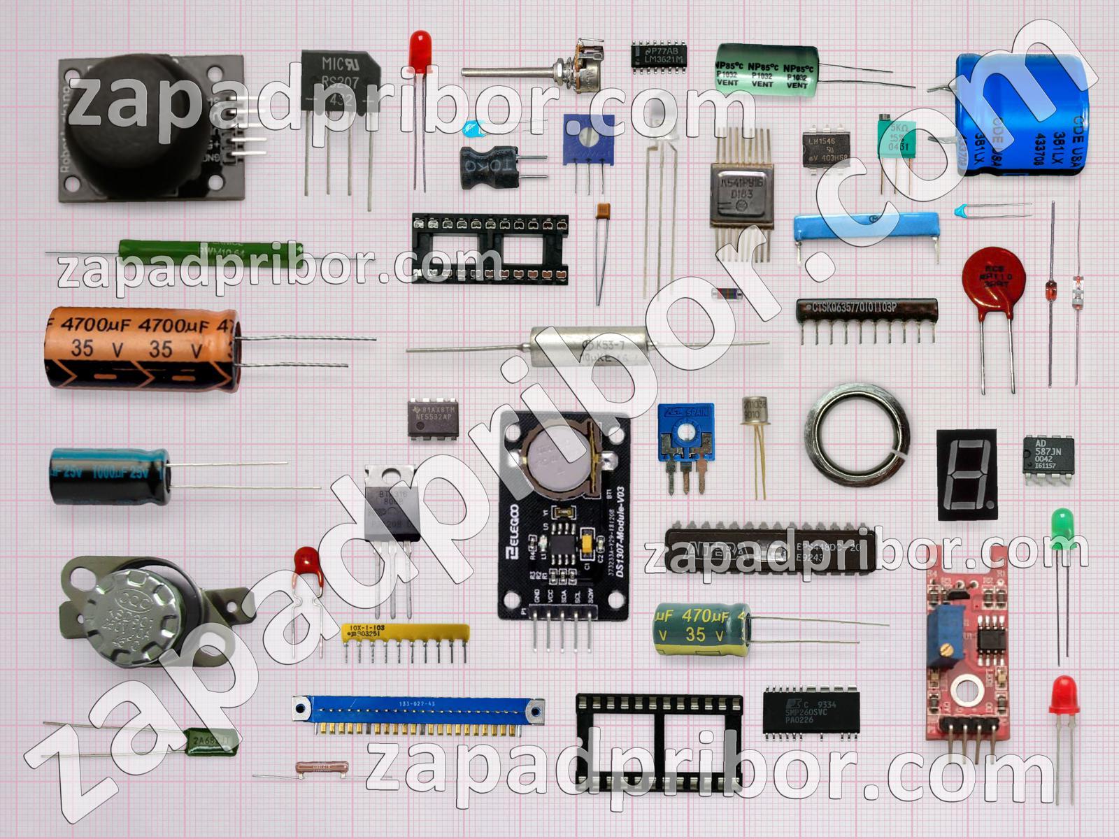 Кроме этих радиодеталей на нашем сайте вы сможете найти большой перечень компонентов. Осуществляйте поиск по основным типам радиодеталей таких как транзистор, резистор, индикатор, трансформатор, датчик, контакты, кнопка, дроссель, адаптер, тиристор, разъем, усилитель, тумблер, светодиод, колодки, преобразователь, конденсатор, экран, диод, диодный мост, резонатор, микросхема, индуктивность, реле, дисплей, фотодиод, соединитель, переключатель и другие.