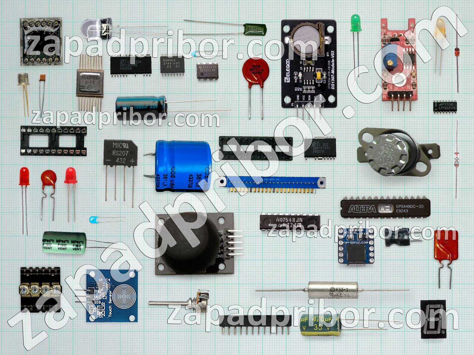 Кроме этих радиодеталей на нашем сайте вы сможете найти большой перечень компонентов. Осуществляйте поиск по основным типам радиодеталей таких как переключатель, диод, трансформатор, индуктивность, разъем, диодный мост, светодиод, колодки, резонатор, тиристор, микросхема, усилитель, резистор, кнопка, реле, дроссель, соединитель, преобразователь, адаптер, тумблер, транзистор, индикатор, фотодиод, контакты, экран, дисплей, датчик, конденсатор и другие.