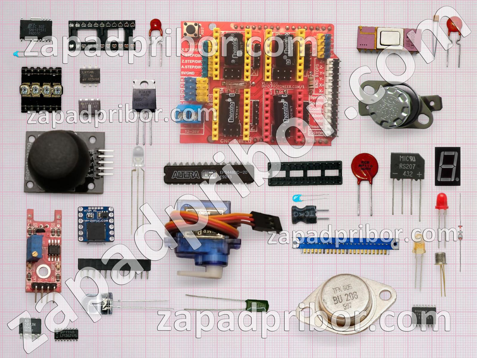 Кроме этих радиодеталей на нашем сайте вы сможете найти большой перечень компонентов. Осуществляйте поиск по основным типам радиодеталей таких как соединитель, реле, диод, транзистор, резистор, разъем, экран, конденсатор, кнопка, фотодиод, адаптер, тиристор, индуктивность, преобразователь, переключатель, датчик, индикатор, дроссель, контакты, диодный мост, резонатор, усилитель, светодиод, трансформатор, дисплей, микросхема, колодки, тумблер и другие.