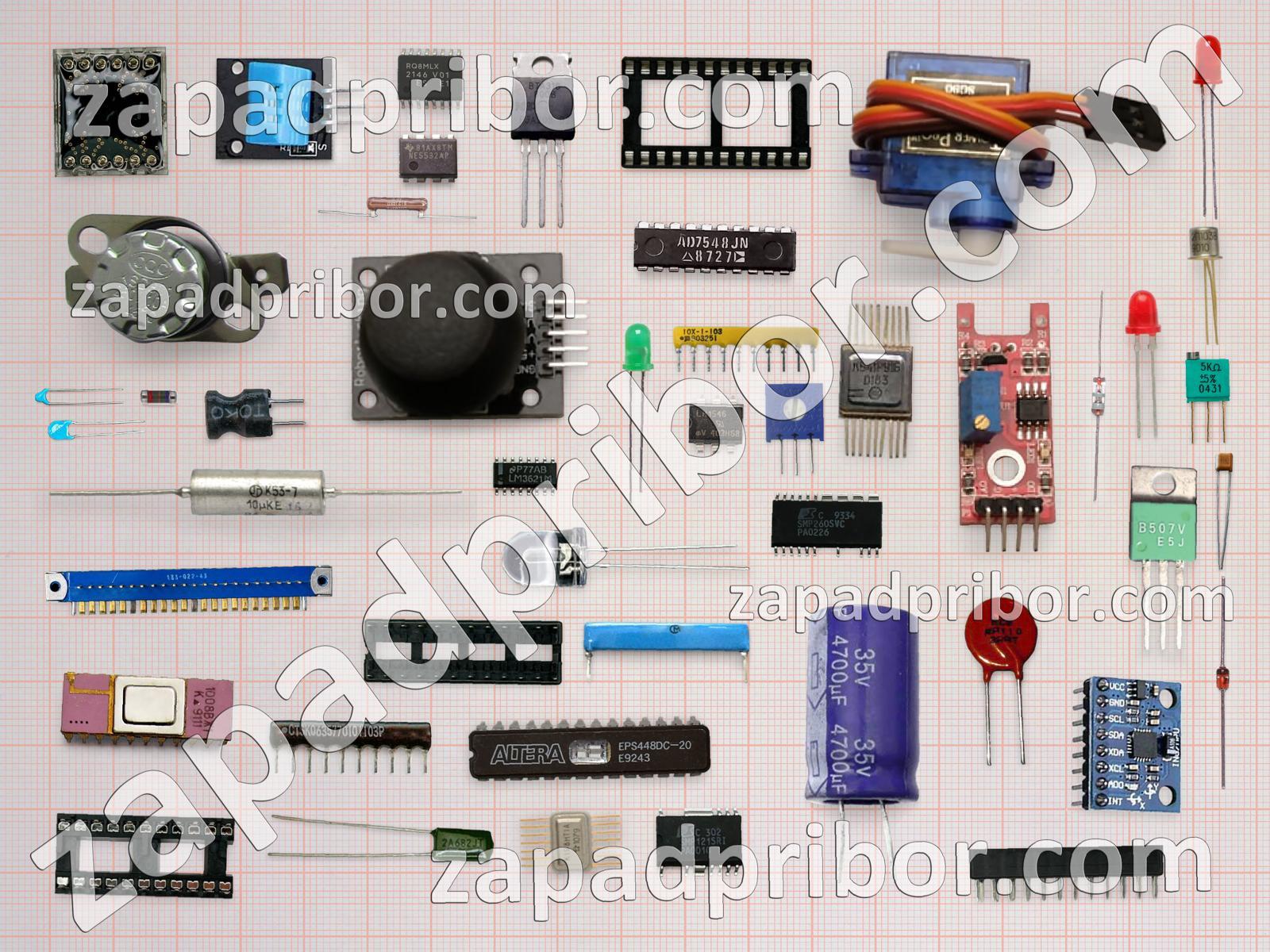 Кроме этих радиодеталей на нашем сайте вы сможете найти большой перечень компонентов. Осуществляйте поиск по основным типам радиодеталей таких как дроссель, тиристор, дисплей, резистор, контакты, адаптер, трансформатор, светодиод, кнопка, преобразователь, датчик, тумблер, разъем, диод, транзистор, индуктивность, микросхема, колодки, конденсатор, индикатор, экран, резонатор, соединитель, реле, диодный мост, фотодиод, усилитель, переключатель и другие.