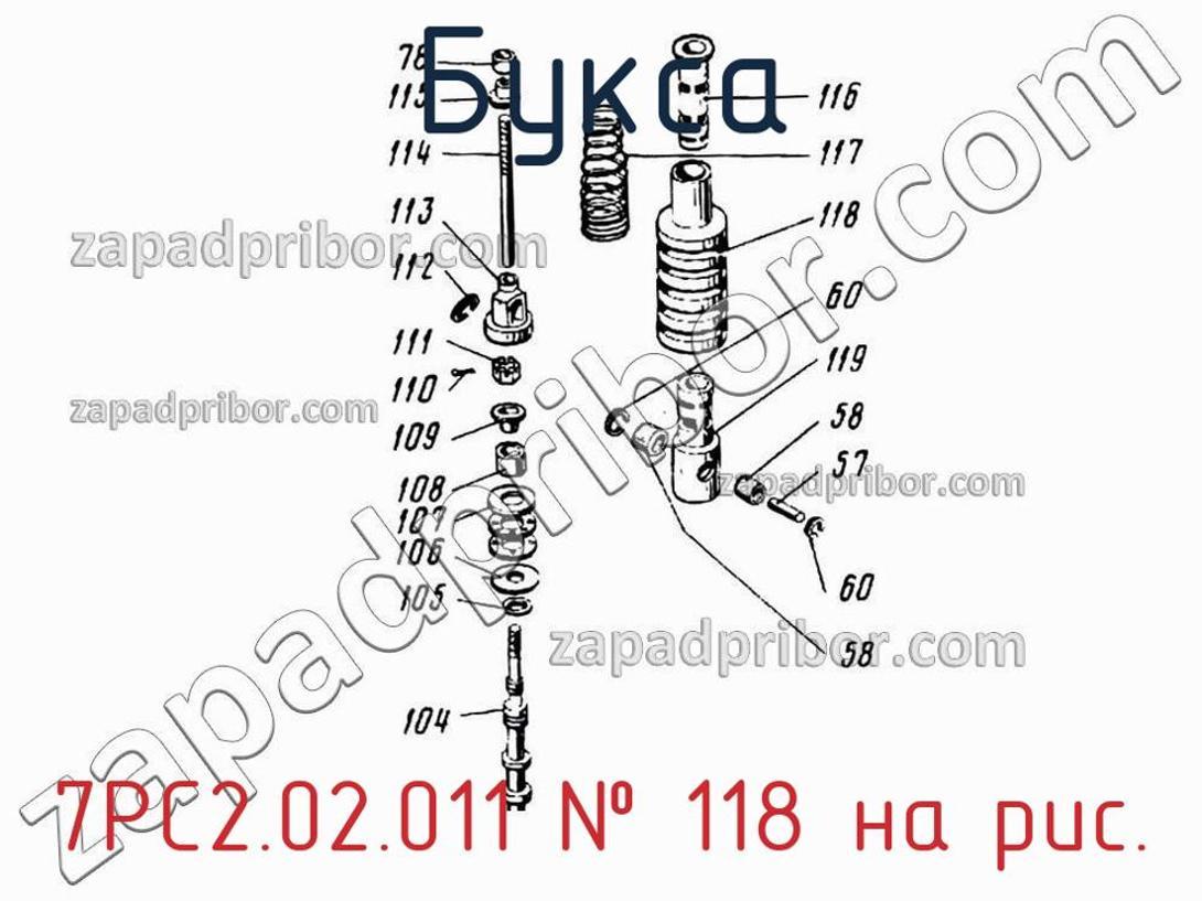 Мы даем гарантию на отсутствие брака или других несоответствий технической документации. По вопросам приобретения 7РС2.02.011 обращайтесь в отдел продаж. Наши менеджеры предоставят всю интересующую Вас информацию по поводу цены, наличия, сроков доставки, гарантии или ответят на любые другие вопросы. Букса, номер 118 на чертеже, (104-119) Регулятор 1-7РС2.00.000спч и другие запасные части для 49 (Ч 26/26) , а также другие буксы и похожие изделия представлены на сайте zapadpribor.com.