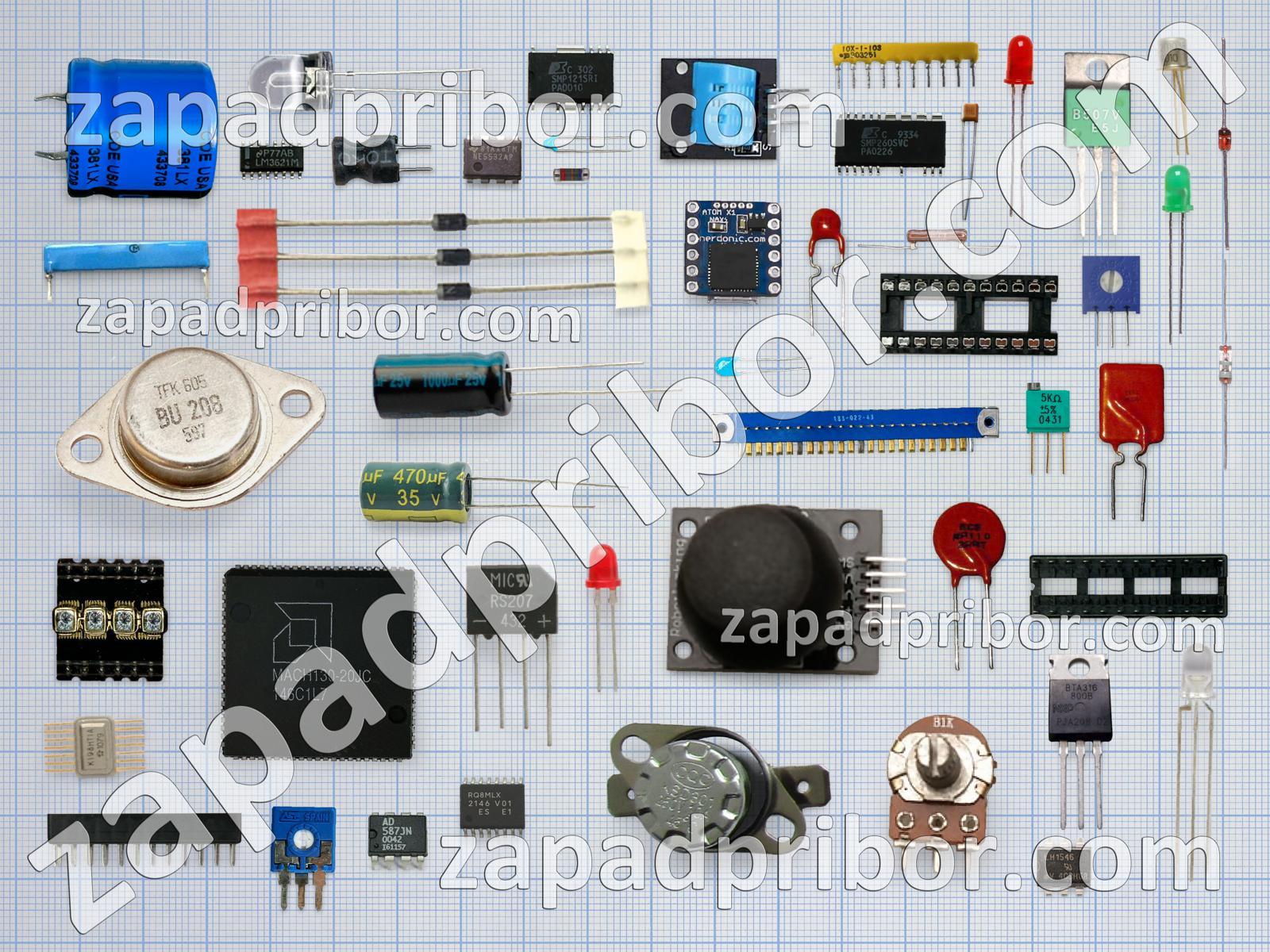 Кроме этих радиодеталей на нашем сайте вы сможете найти большой перечень компонентов. Осуществляйте поиск по основным типам радиодеталей таких как тиристор, диод, колодки, переключатель, тумблер, датчик, микросхема, резонатор, трансформатор, экран, контакты, дроссель, адаптер, индикатор, соединитель, диодный мост, индуктивность, разъем, фотодиод, дисплей, усилитель, реле, кнопка, светодиод, преобразователь, транзистор, резистор, конденсатор и другие.