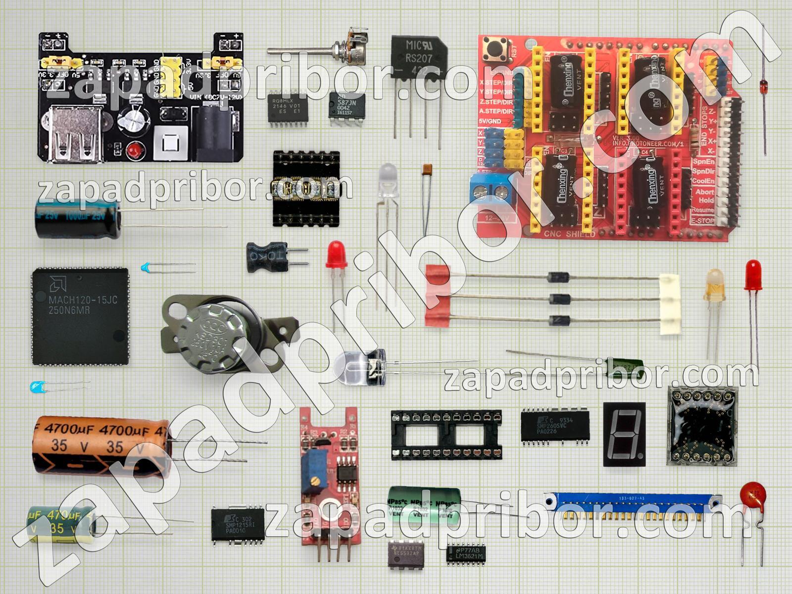 Кроме этих радиодеталей на нашем сайте вы сможете найти большой перечень компонентов. Осуществляйте поиск по основным типам радиодеталей таких как резонатор, контакты, индикатор, разъем, адаптер, соединитель, диод, резистор, трансформатор, датчик, кнопка, светодиод, индуктивность, конденсатор, переключатель, реле, колодки, экран, преобразователь, фотодиод, дроссель, диодный мост, транзистор, дисплей, усилитель, тумблер, тиристор, микросхема и другие.