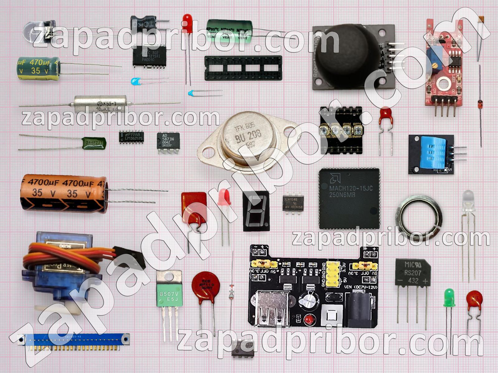Кроме этих радиодеталей на нашем сайте вы сможете найти большой перечень компонентов. Осуществляйте поиск по основным типам радиодеталей таких как соединитель, экран, преобразователь, светодиод, контакты, адаптер, датчик, диодный мост, резонатор, трансформатор, конденсатор, кнопка, реле, переключатель, дроссель, индикатор, резистор, разъем, усилитель, микросхема, тумблер, дисплей, диод, фотодиод, транзистор, колодки, тиристор, индуктивность и другие.