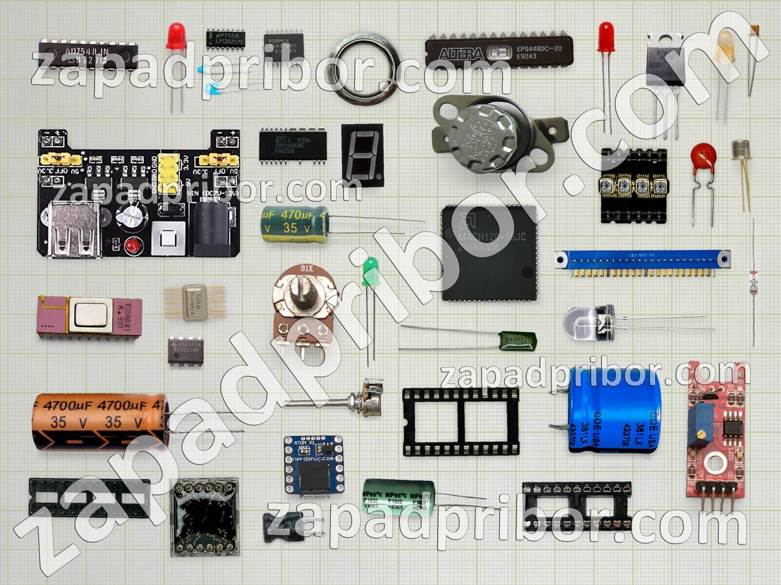 Кроме этих радиодеталей на нашем сайте вы сможете найти большой перечень компонентов. Осуществляйте поиск по основным типам радиодеталей таких как дроссель, индуктивность, тумблер, диод, экран, переключатель, резистор, датчик, соединитель, разъем, светодиод, транзистор, резонатор, диодный мост, преобразователь, тиристор, дисплей, трансформатор, колодки, усилитель, контакты, реле, кнопка, микросхема, адаптер, индикатор, фотодиод, конденсатор и другие.