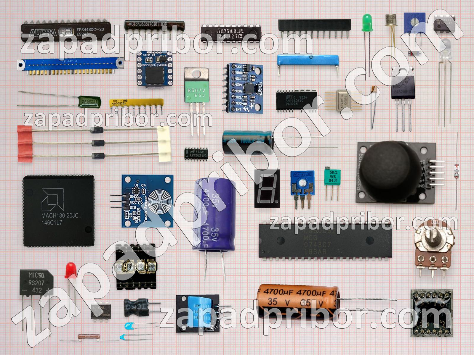 Кроме этих радиодеталей на нашем сайте вы сможете найти большой перечень компонентов. Осуществляйте поиск по основным типам радиодеталей таких как светодиод, экран, колодки, индуктивность, тиристор, индикатор, дисплей, адаптер, резонатор, диод, диодный мост, датчик, соединитель, микросхема, разъем, конденсатор, фотодиод, усилитель, кнопка, тумблер, резистор, трансформатор, транзистор, реле, дроссель, переключатель, преобразователь, контакты и другие.