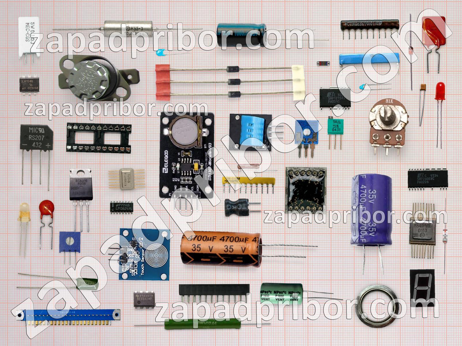 Кроме этих радиодеталей на нашем сайте вы сможете найти большой перечень компонентов. Осуществляйте поиск по основным типам радиодеталей таких как датчик, конденсатор, разъем, колодки, соединитель, фотодиод, диодный мост, преобразователь, дисплей, переключатель, контакты, адаптер, тиристор, тумблер, реле, трансформатор, дроссель, диод, усилитель, резистор, индуктивность, индикатор, кнопка, экран, светодиод, резонатор, микросхема, транзистор и другие.