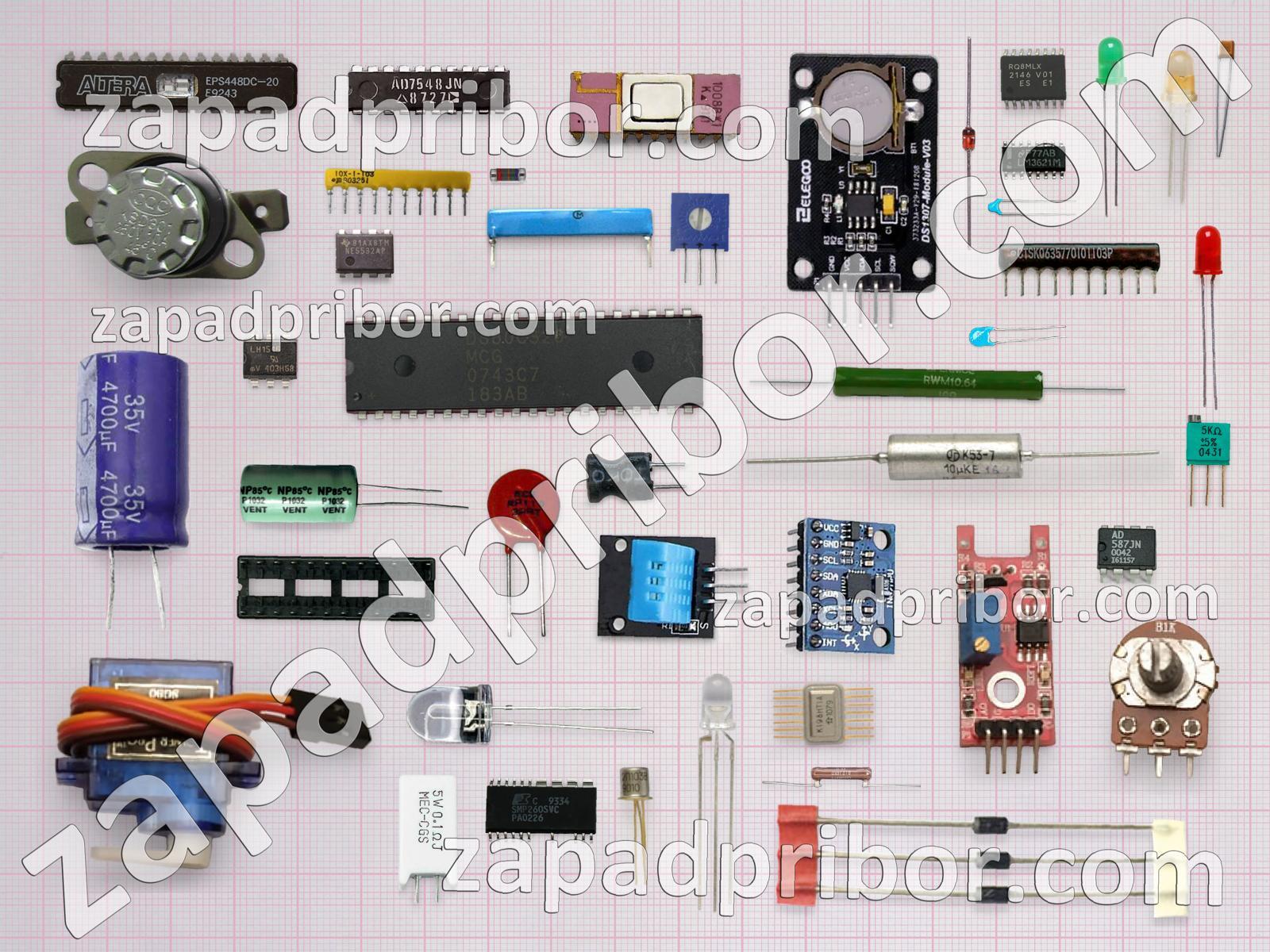 А также на сайте присутствуют более специфические наименования продукции, к примеру, реле герконовые, герконы, интерфейсы RS-232, специализированные микроконтроллеры, конденсаторы металлобумажные, аудиоконденсаторы, регистры-защелки, модули диодно-тиристорные, датчики усилия, тензодатчики и другие.