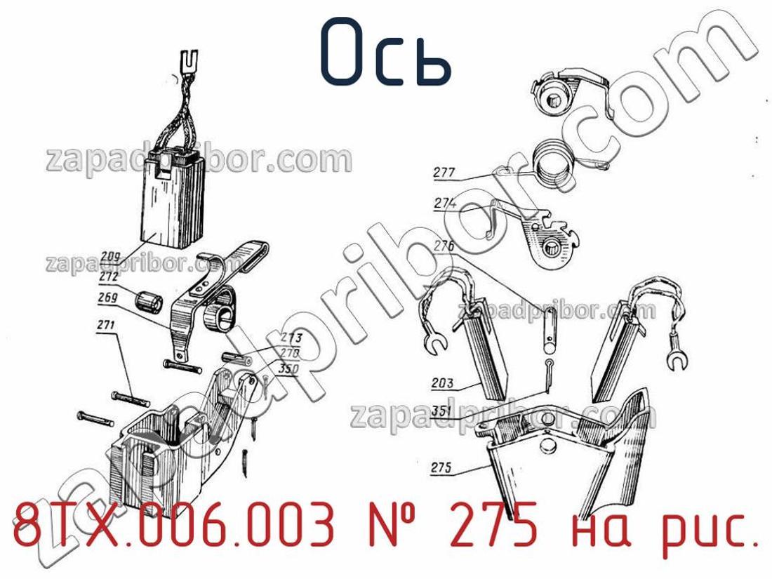 Компания со своей стороны гарантирует отсутствие каких-либо дефектов, несовершенств или неточностей у комплектации и документации оси. 8ТХ.006.003 можно заказать, связавшись с нашим отделом продаж. Наши менеджеры всегда радостно предоставят вам всю информацию о товаре, его наличии, цене и т.д. Для этого позвоните по указанным телефонам или оставьте заявку через форму обратной связи. Ось, номер 275 на чертеже, Щеткодержатель ГП-300Б, ГП-300Т (197,196) и другие запасные части для , а также другие оси и похожие изделия представлены на сайте zapadpribor.com.