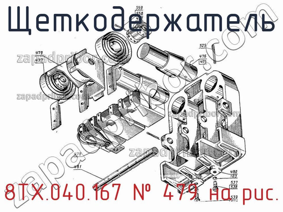 ОТК компании гарантирует отсутствие дефектов у всех щеткодержателей на нашем сайте. Для покупки 8ТХ.040.167 свяжитесь с отделом продаж. Менеджеры компании предоставят всю информацию о цене, наличии, сроках доставки, гарантии и ответят на любые другие вопросы. Щеткодержатель, номер 479 на чертеже, Щеткодержатель ЭД-118А, ЭД-118АТ и другие запасные части для , а также другие щеткодержатели и похожие изделия представлены на сайте zapadpribor.com.